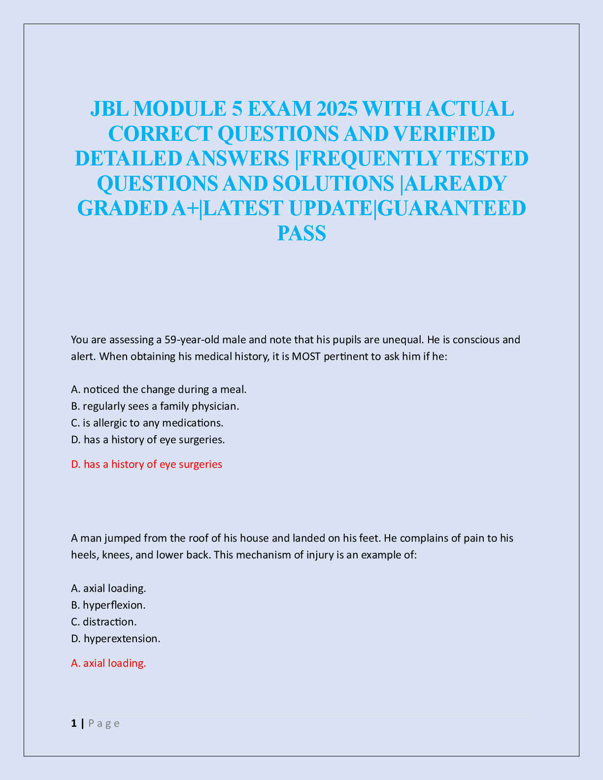 EMT-B - Emergency Medical Technician - Basic > EXAM > JBL MODULE 5 EXAM 2025 (All)