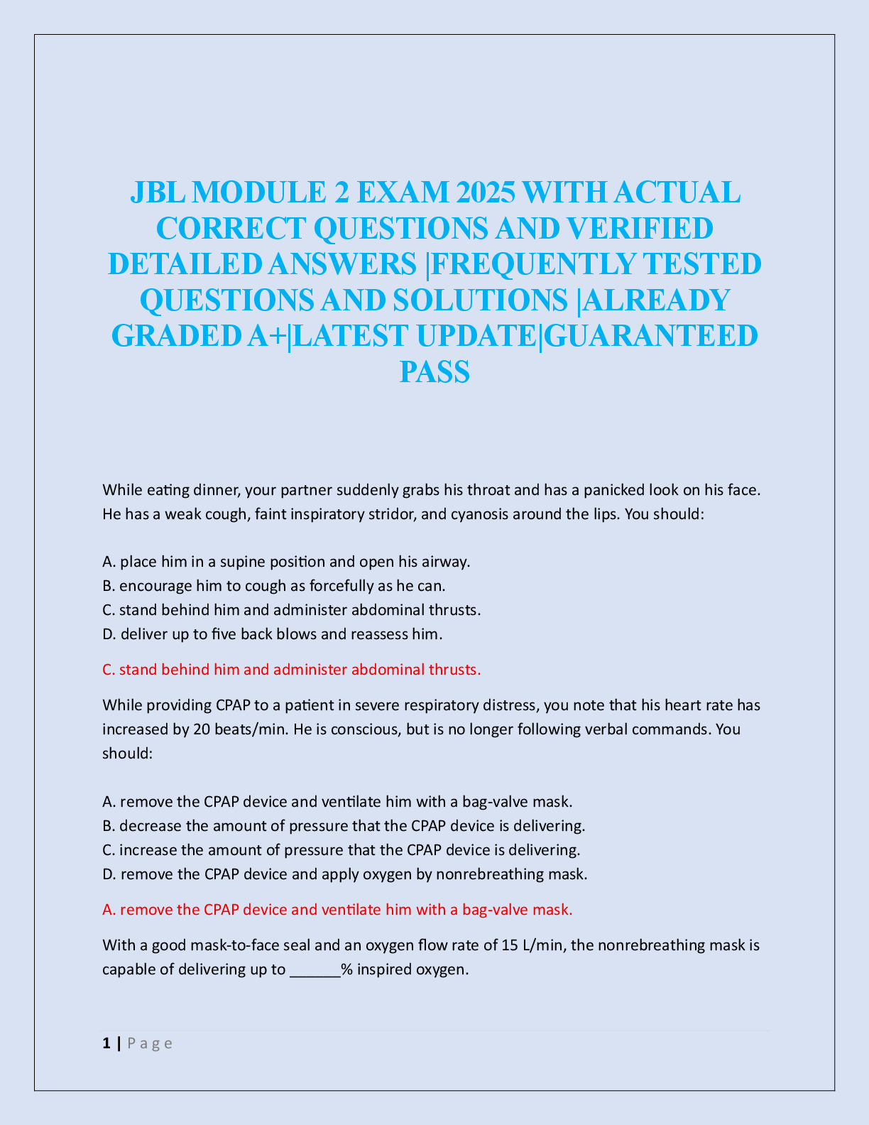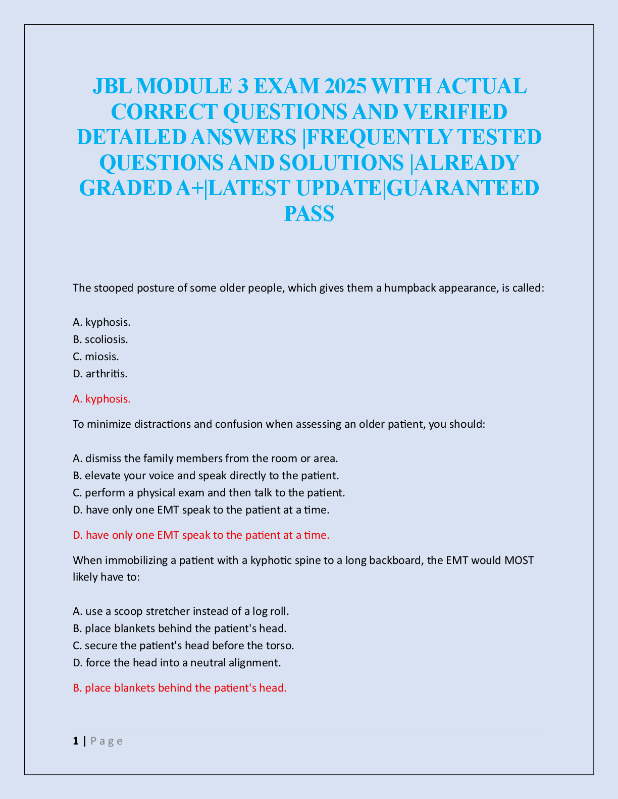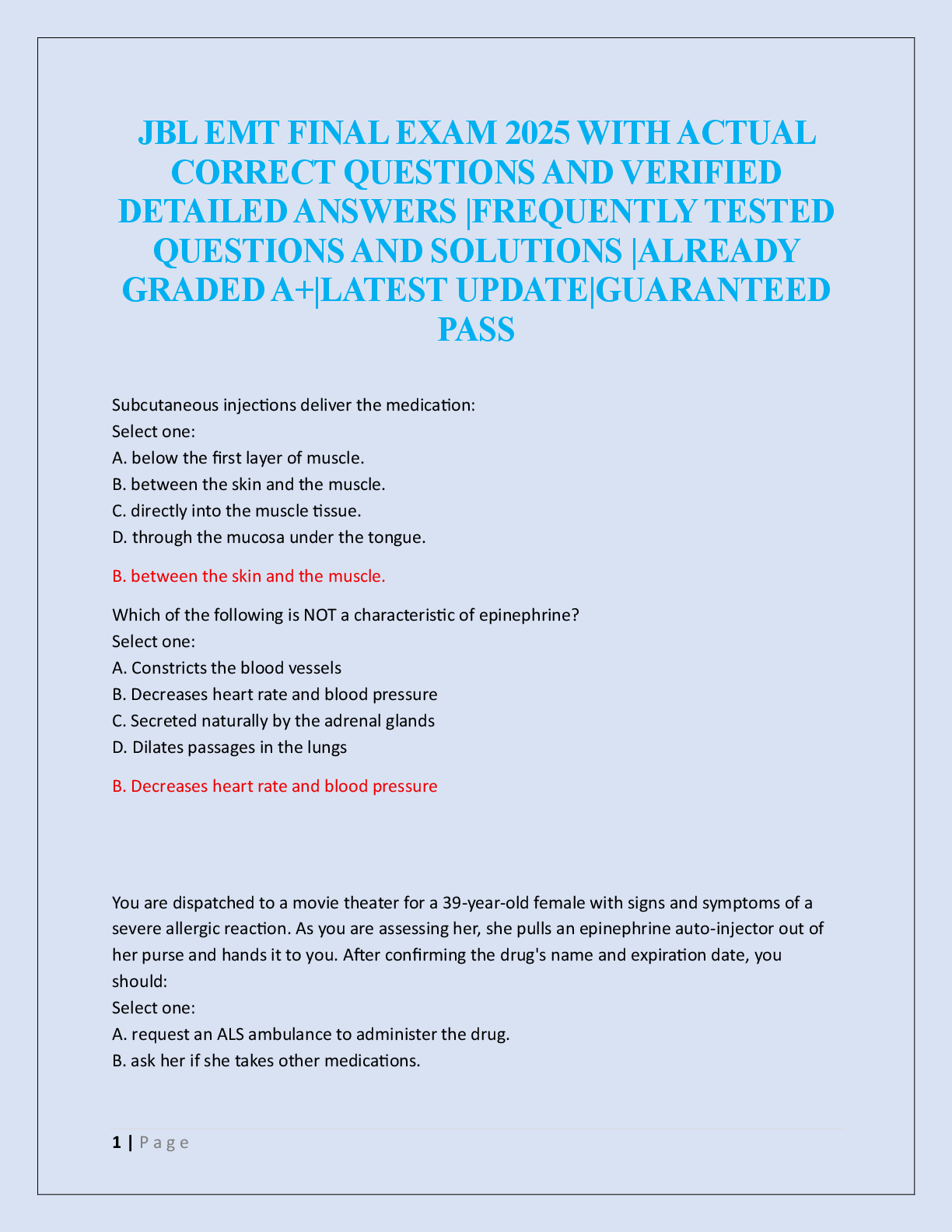 EMT-B - Emergency Medical Technician - Basic > EXAM > JBL EMT FINAL EXAM 2025 (All)