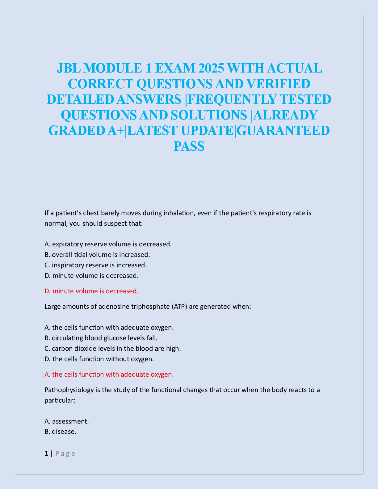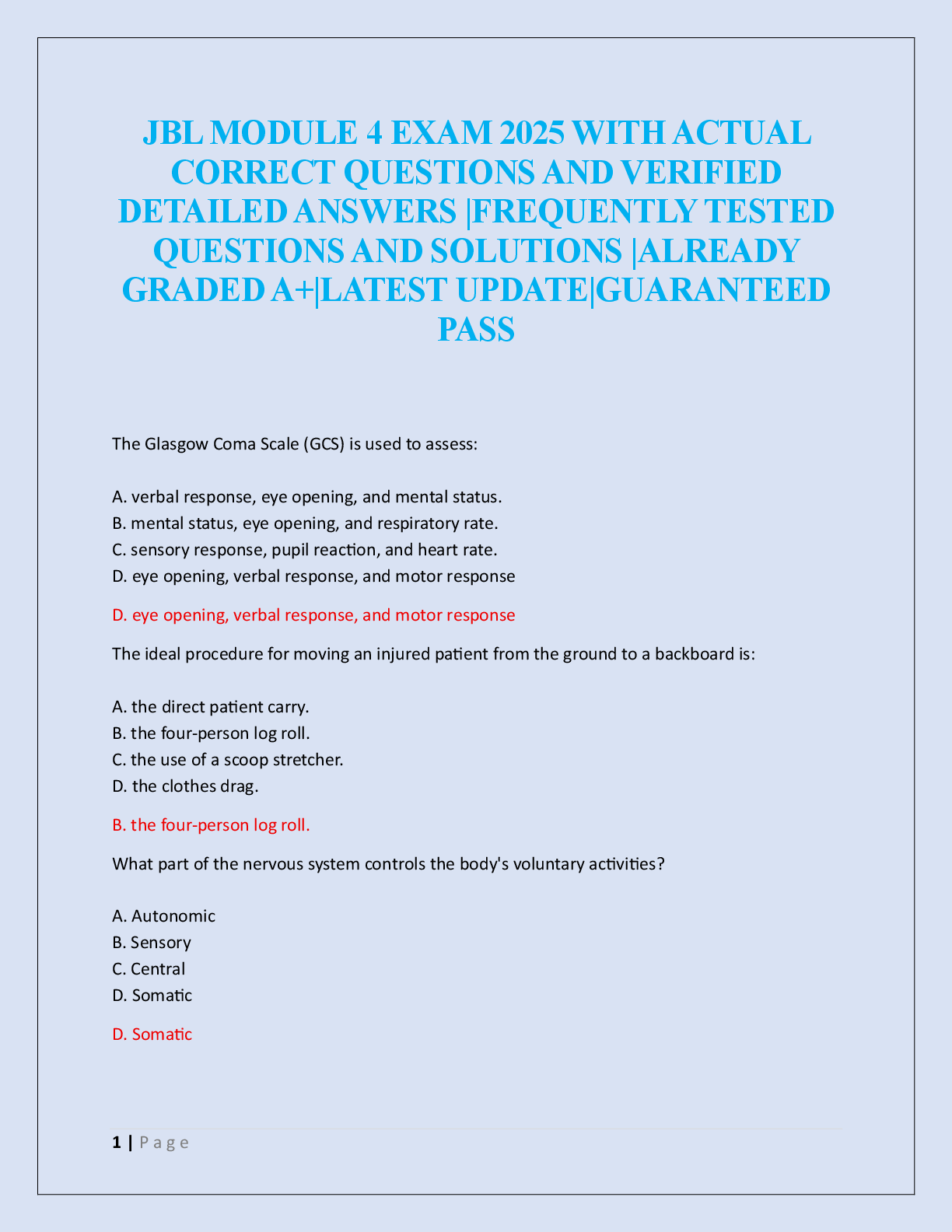 EMT-B - Emergency Medical Technician - Basic > EXAM > JBL MODULE 1 EXAM 2025 (All)