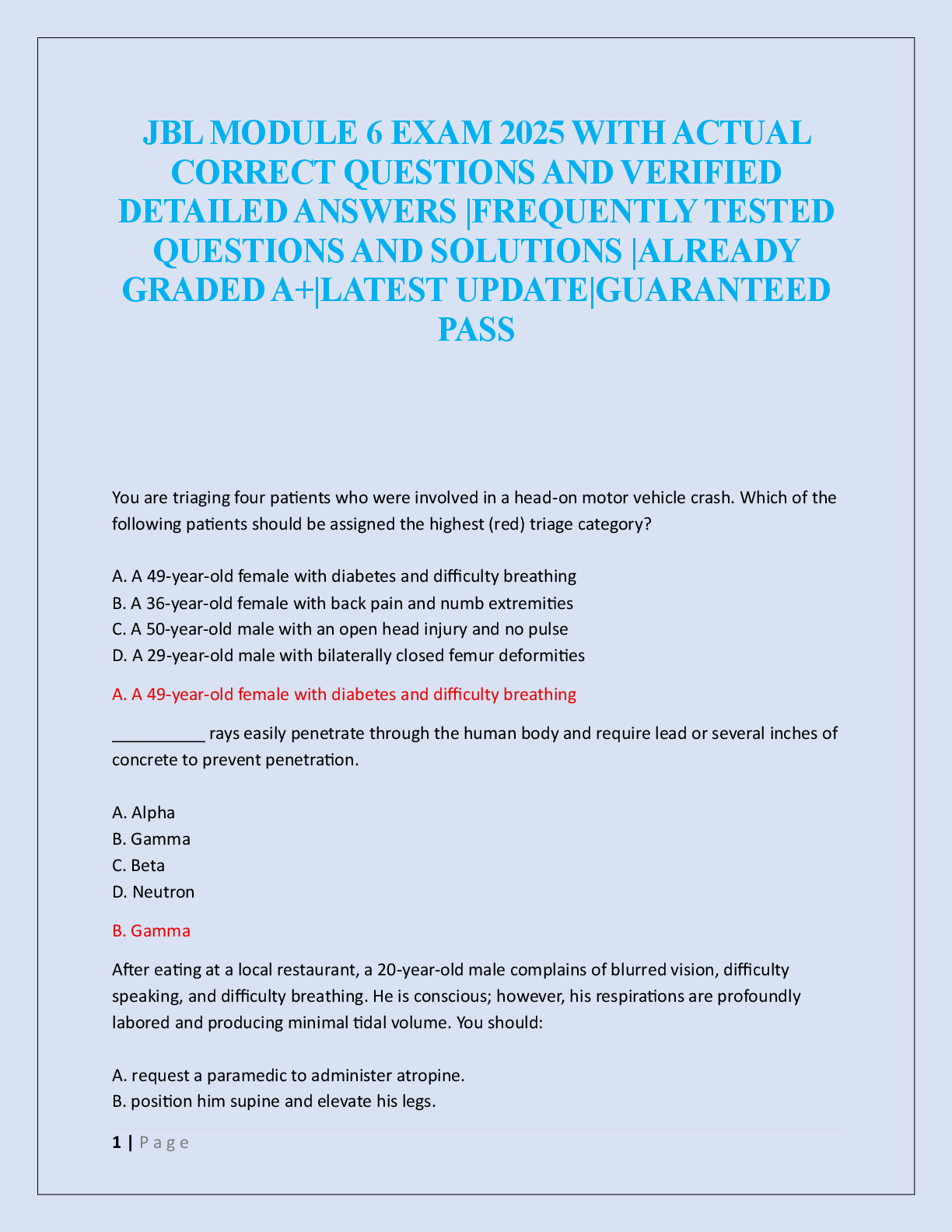 EMT-B - Emergency Medical Technician - Basic > EXAM > JBL MODULE 6 EXAM 2025 (All)