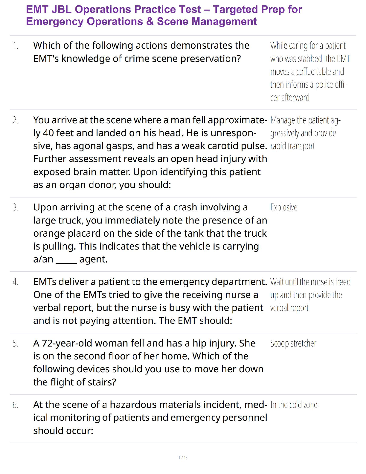 EMT-B - Emergency Medical Technician - Basic > STUDY GUIDE > EMT JBL Operations Practice Test – Targeted Prep for Emergency Operations & Scene Management (All)