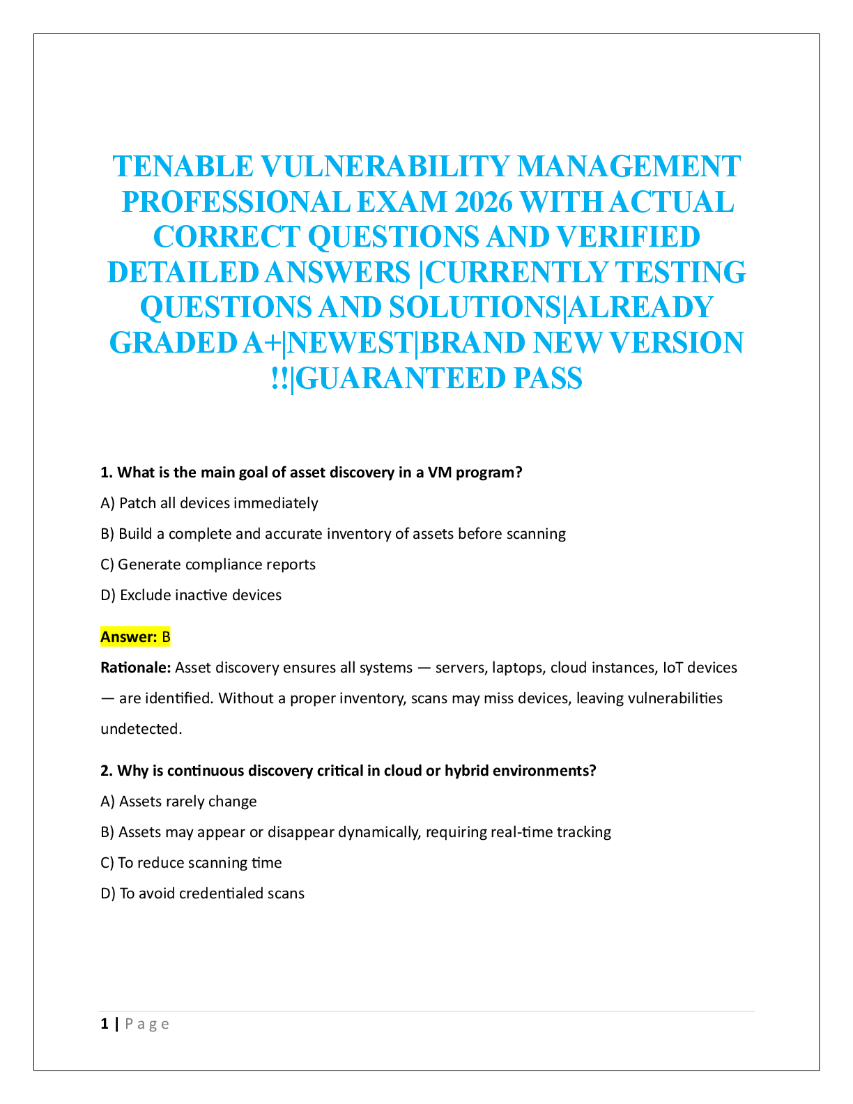 CyberArk Defender and Sentry > EXAM > TENABLE VULNERABILITY MANAGEMENT PROFESSIONAL EXAM 2026 (All)