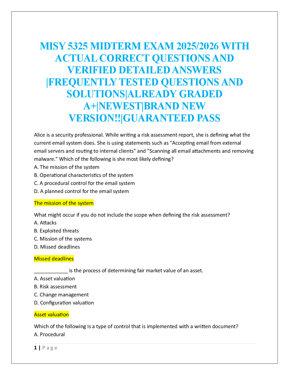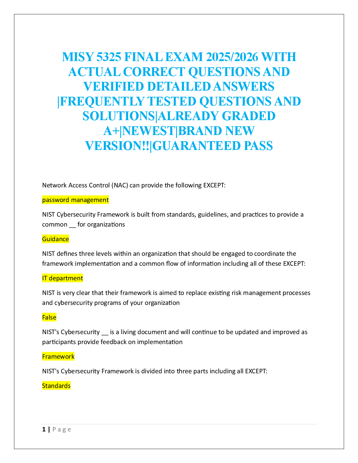 CyberArk Defender and Sentry > EXAM > MISY 5325 MIDTERM EXAM (All)