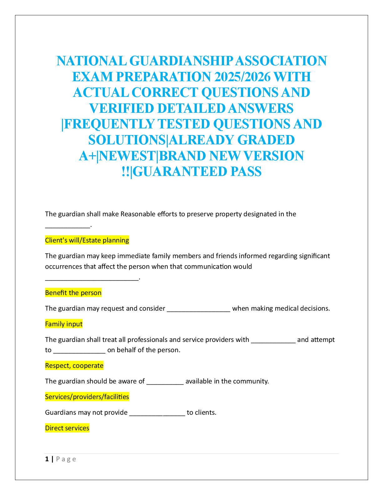 Sociology > EXAM > NATIONAL GUARDIANSHIP ASSOCIATION EXAM PREPARATION (All)