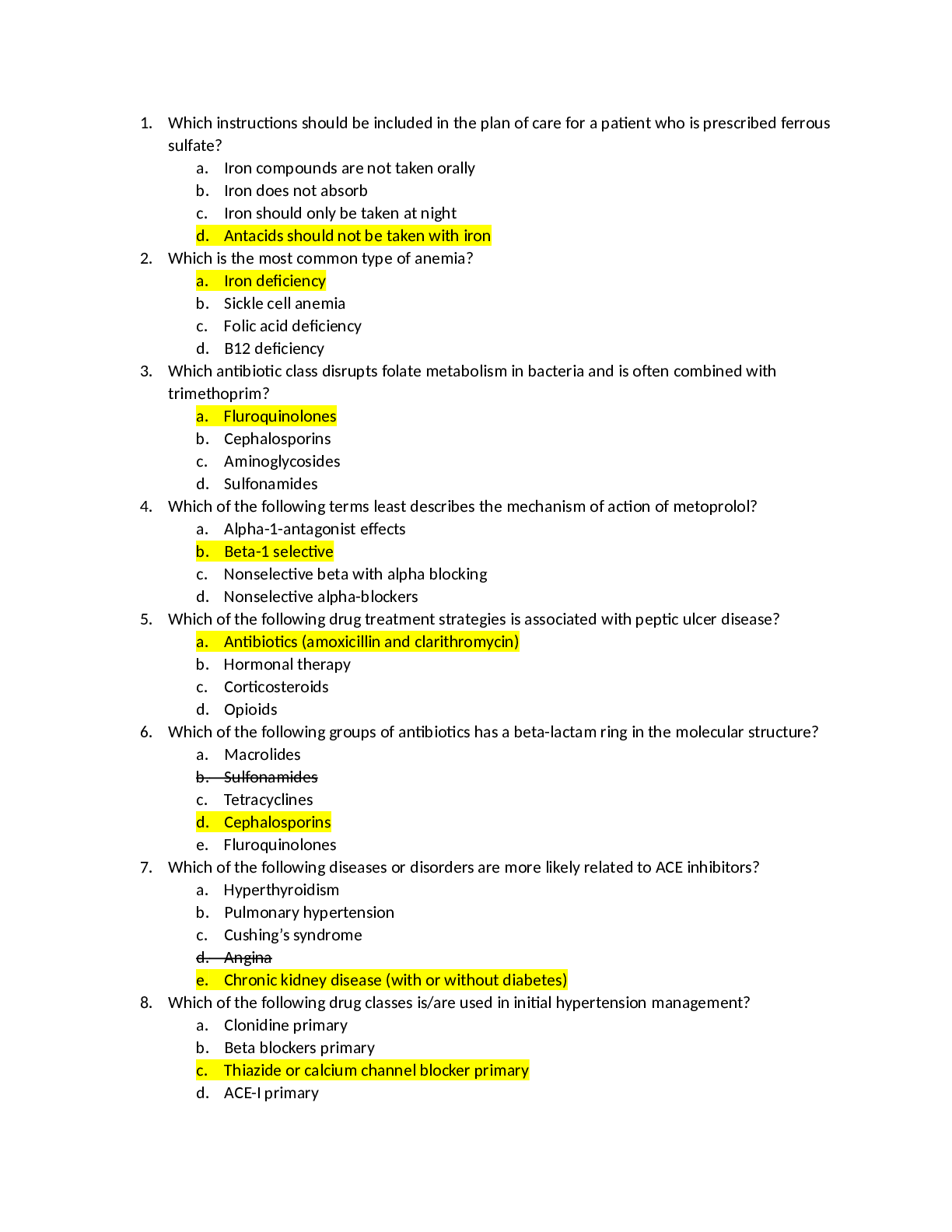 NES Elementary Education > TEST BANKS > HESI Question bank pharm (All)
