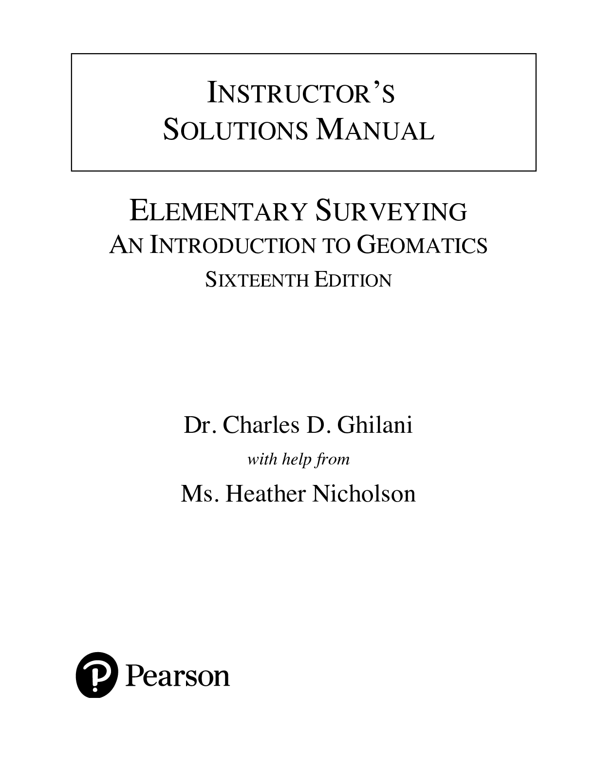 NES Elementary Education > SOLUTIONS MANUAL > Elementary Surveying An Introduction to Geomatics, 16th Edition by Charles Ghilani | Instructor's Solutions Manual (All)