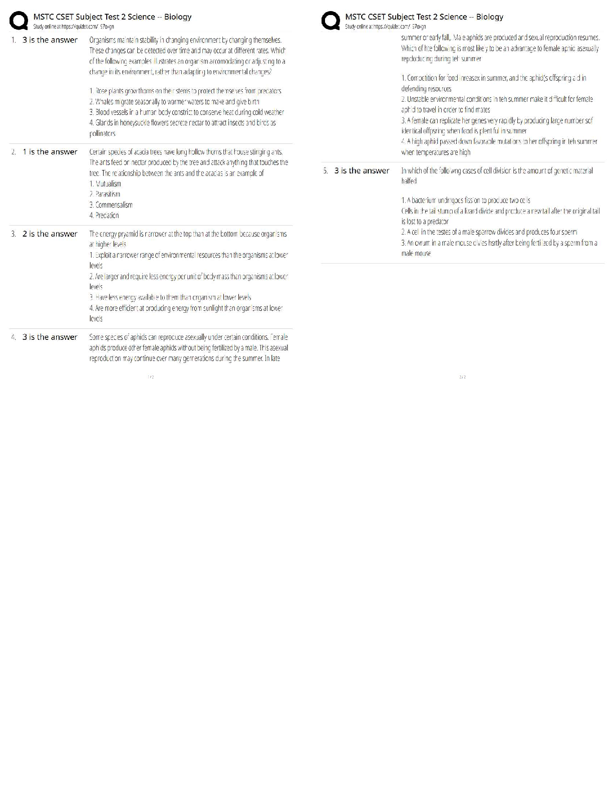 NES Elementary Education > QUESTIONS and ANSWERS > MSTC CSET Subject Test 2 Science – Biology Study Guide / 2025 Update / Score 100% Prep (All)