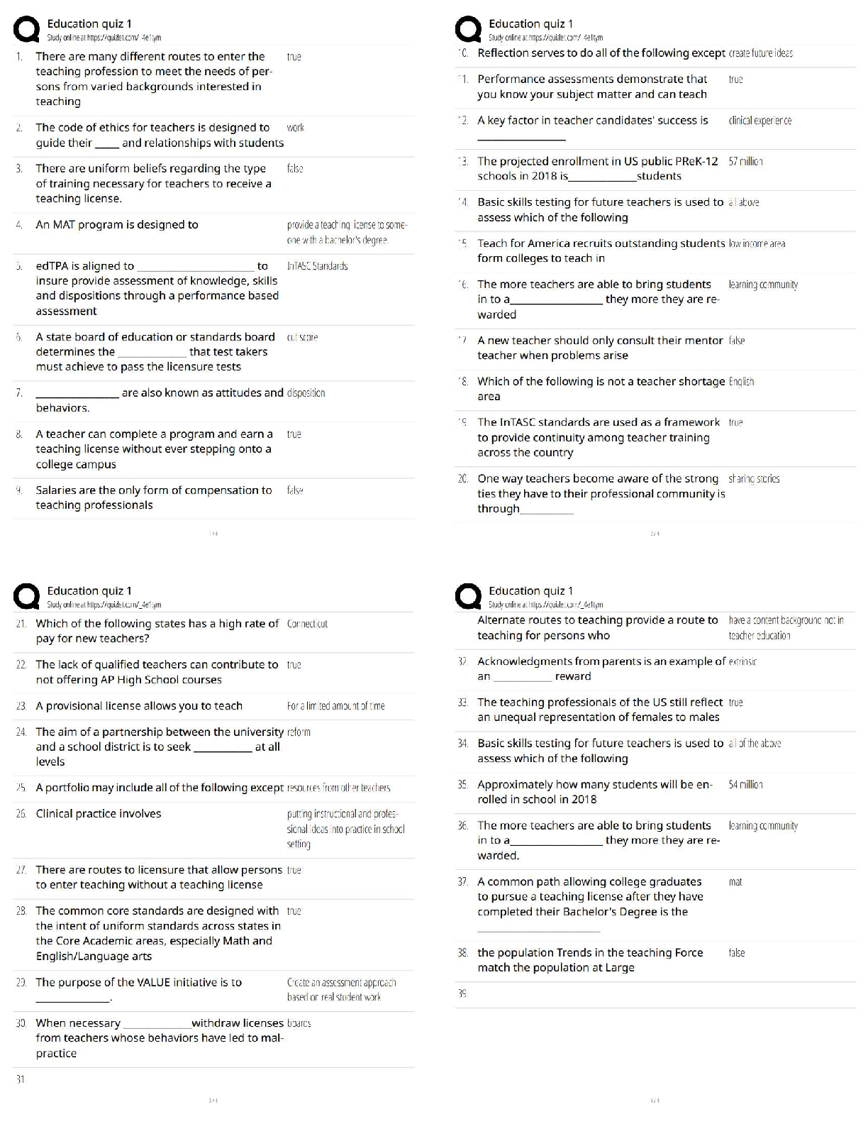 NES Elementary Education > QUESTIONS & ANSWERS > Education Quiz 1 Study Guide / 2025 Update / Score 100% Test Prep (All)