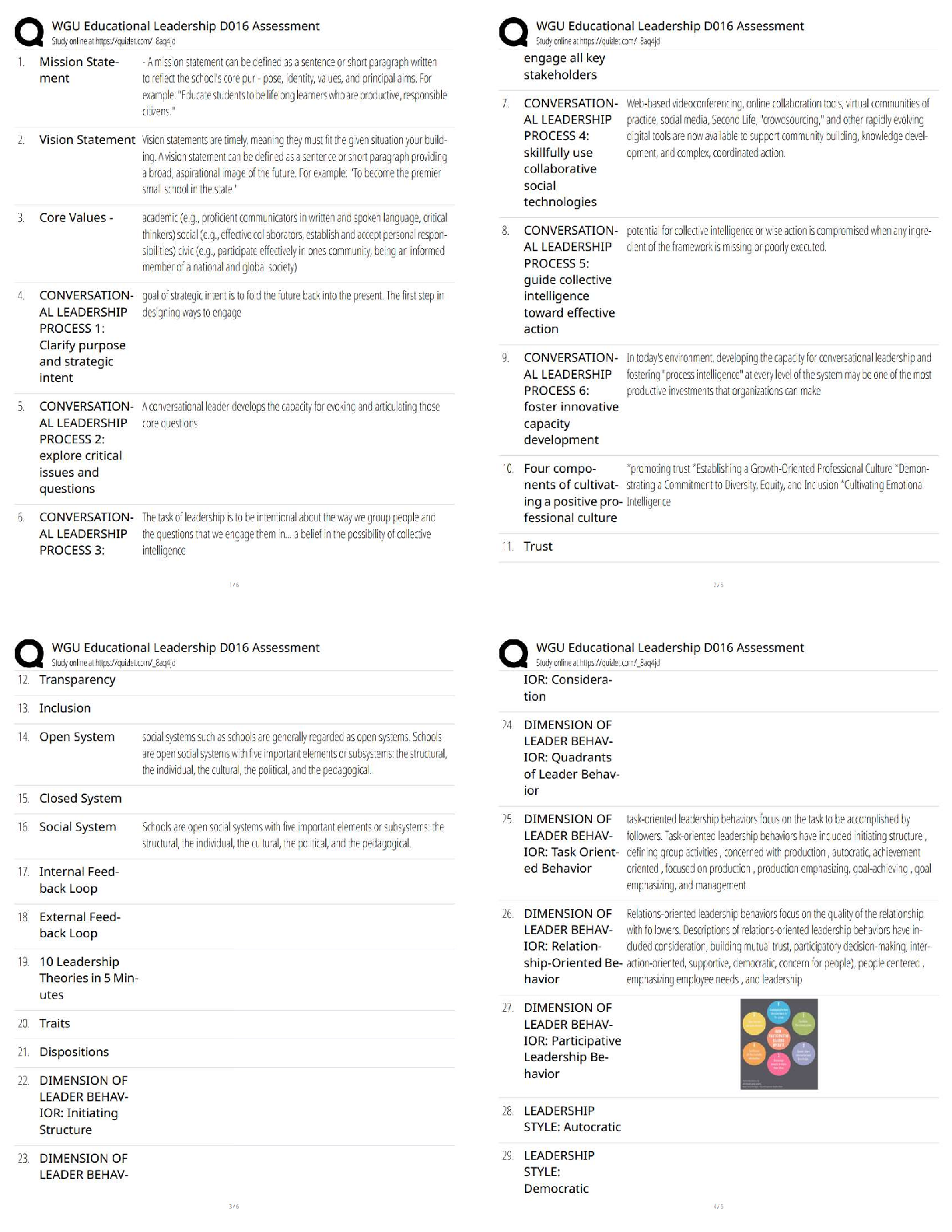 NES Elementary Education > QUESTIONS & ANSWERS > WGU D016 Educational Leadership Assessment / 2025 Update / Score 100% Study Guide (All)