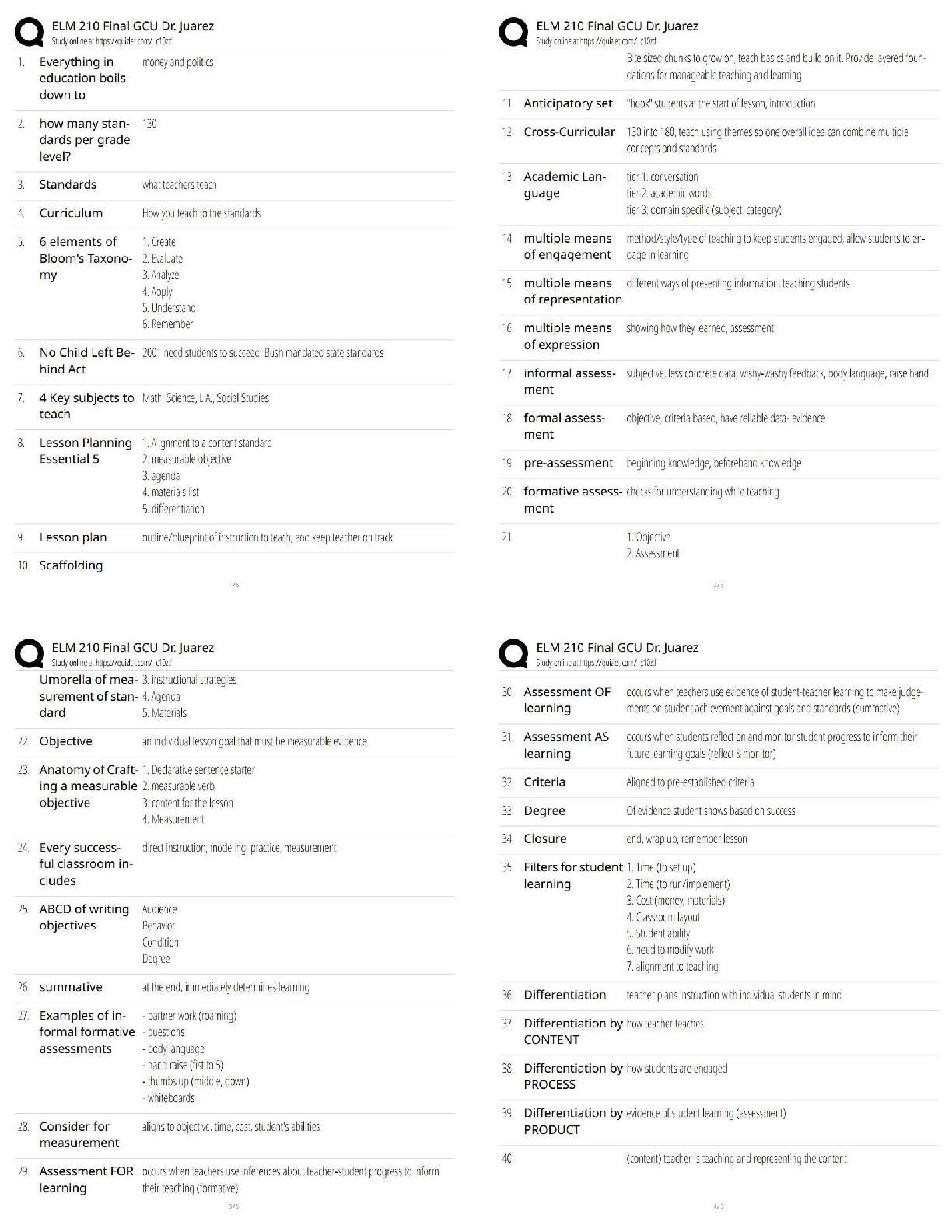 NES Elementary Education > QUESTIONS & ANSWERS > ELM 210 Final Exam Study Guide (GCU – Dr. Juarez) / 2025 Update / Score 100% Prep (All)