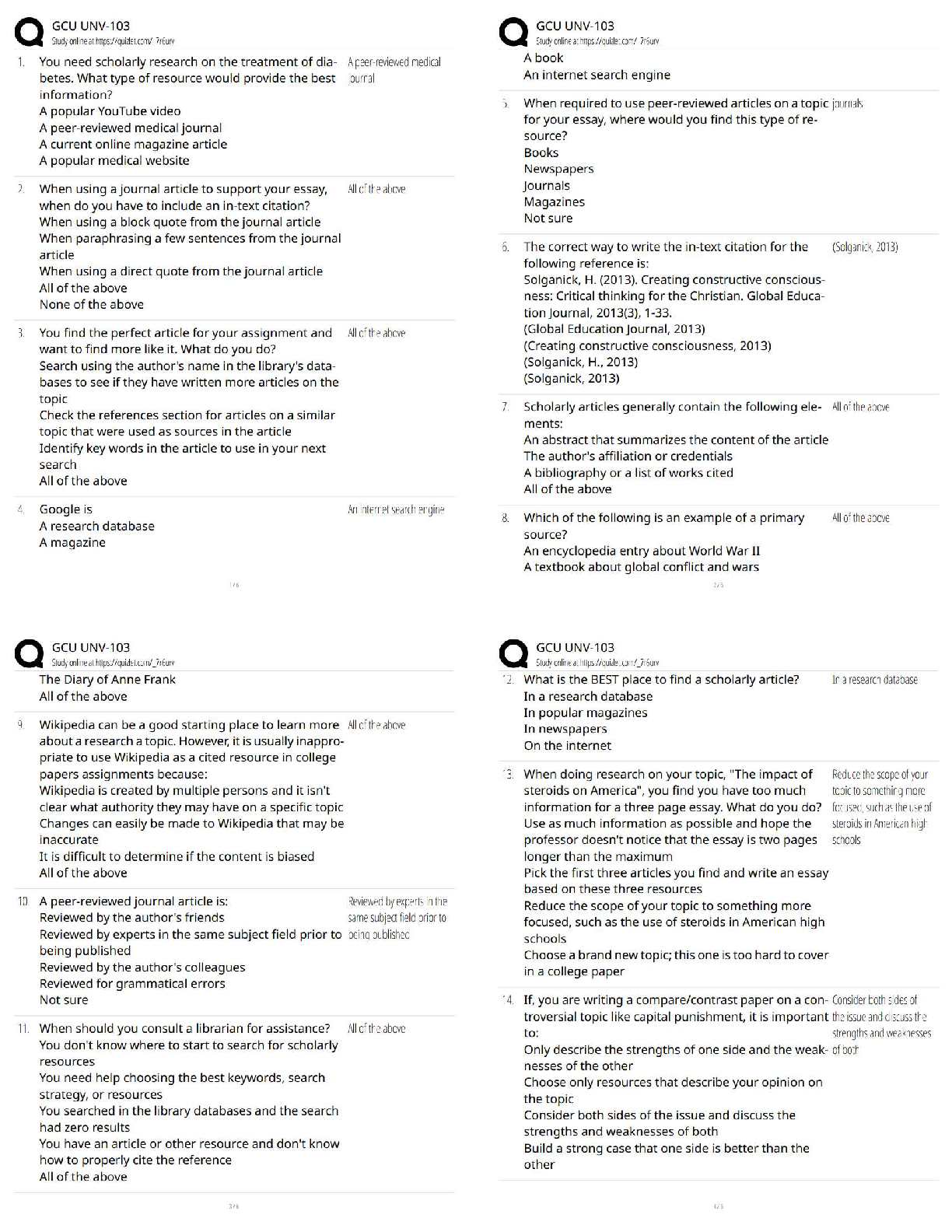 NES Elementary Education > QUESTIONS & ANSWERS > GCU UNV-103 Study Guide / 2025 Update / Score 100% Success Prep (All)