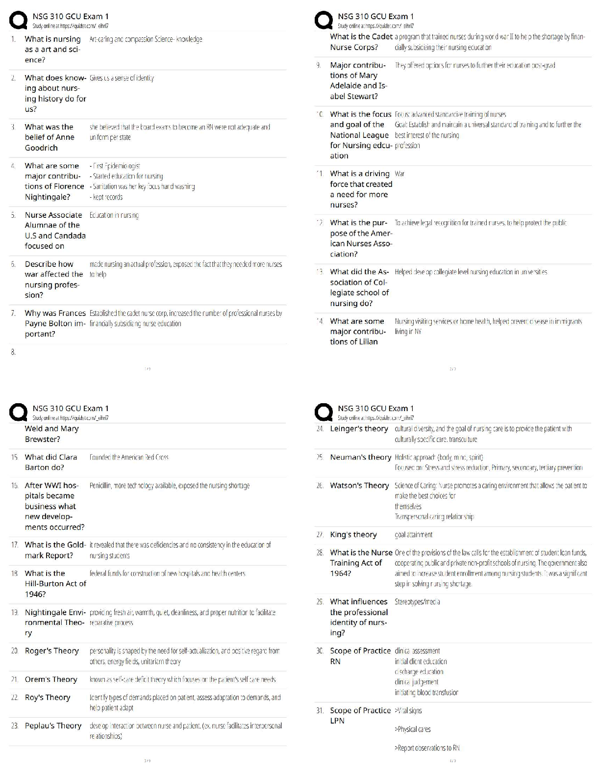 NES Elementary Education > QUESTIONS & ANSWERS > NSG 310 Exam 1 Study Guide (GCU) / 2025 Update / Score 100% Nursing Prep (All)