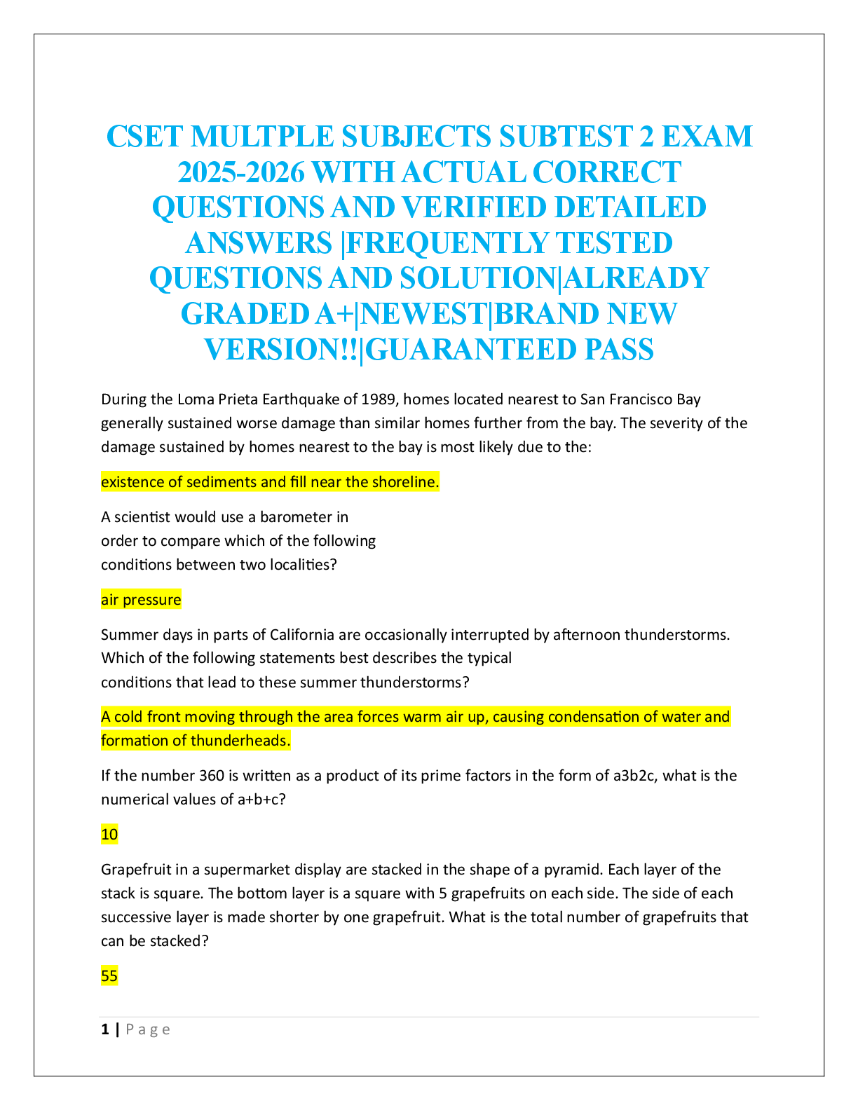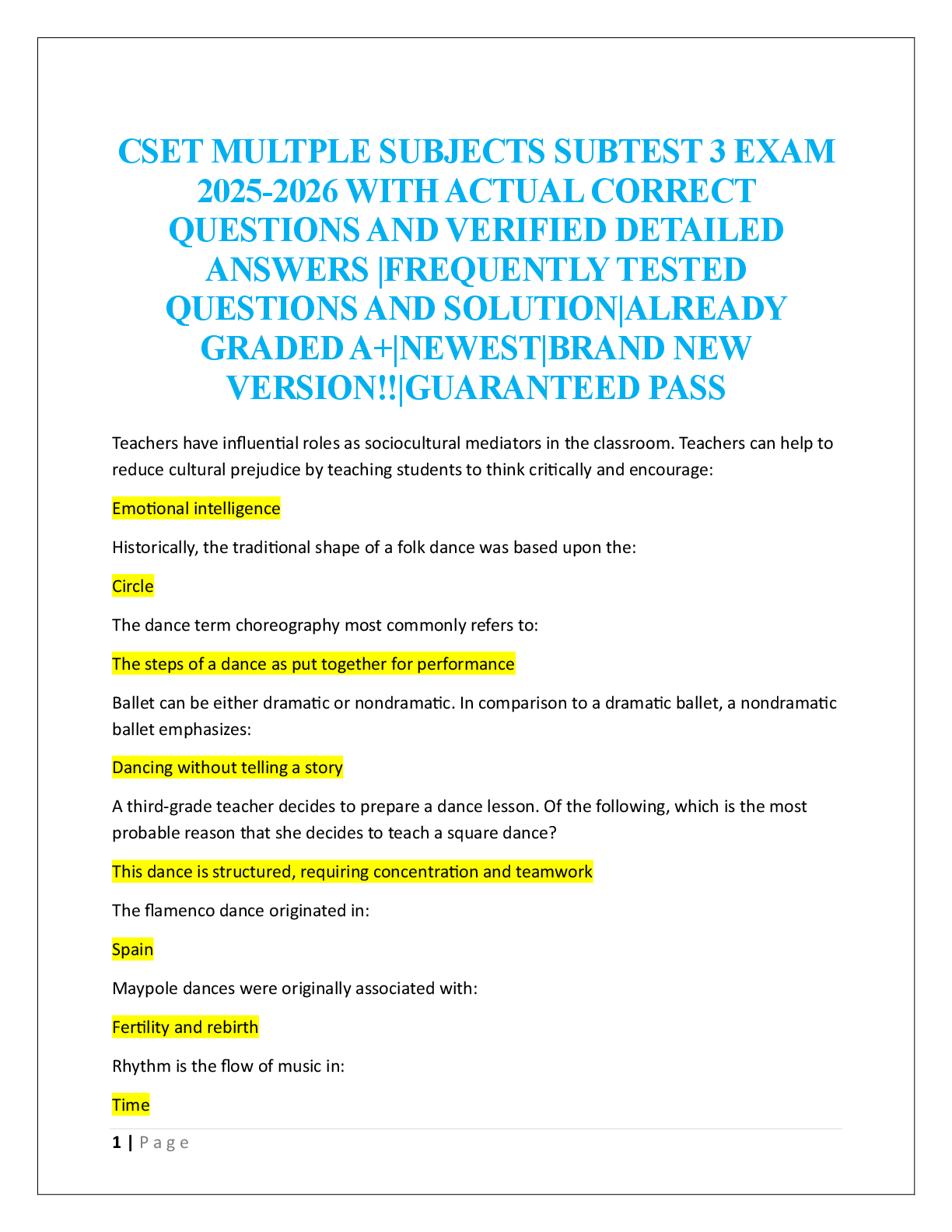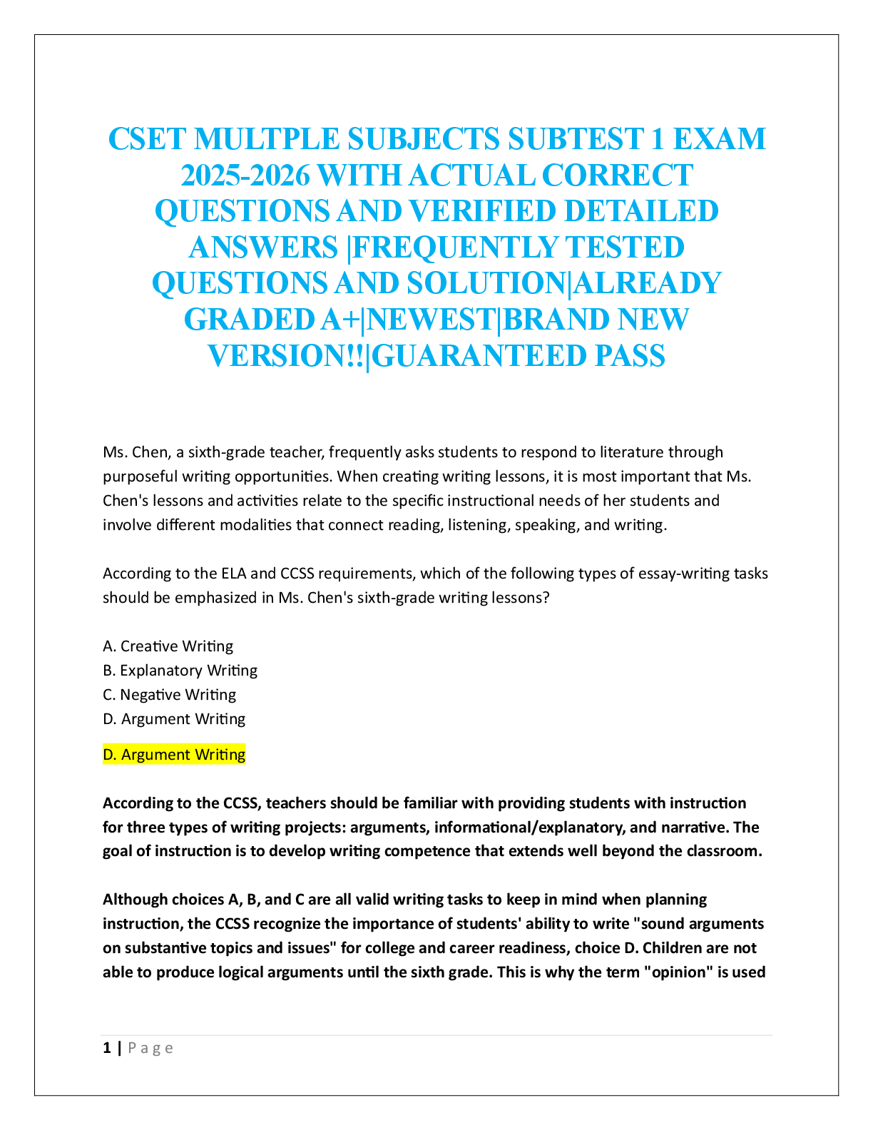 NES Elementary Education > EXAMs > CSET MULTPLE SUBJECTS SUBTEST 1 EXAM (All)