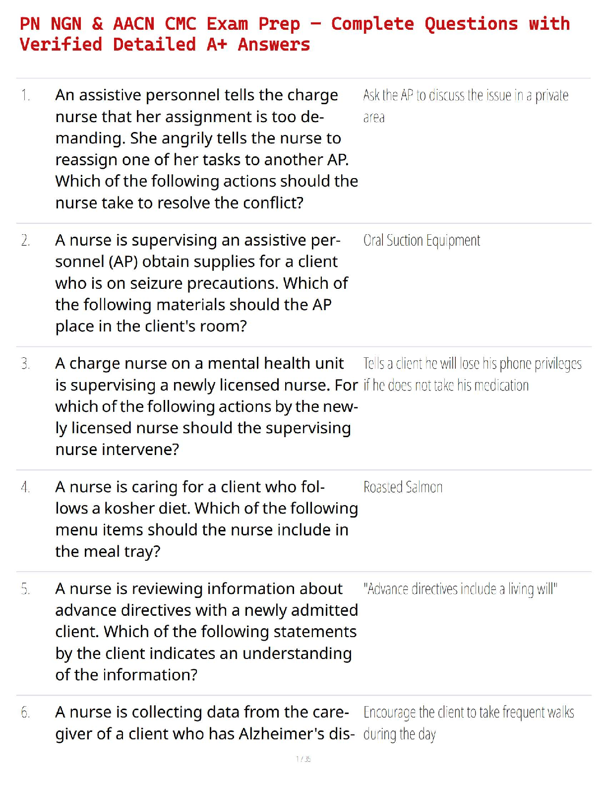 NGN HESI > QUESTIONS & ANSWERS > PN NGN & AACN CMC Exam Prep – Complete Questions with Verified Detailed A+ Answers (All)