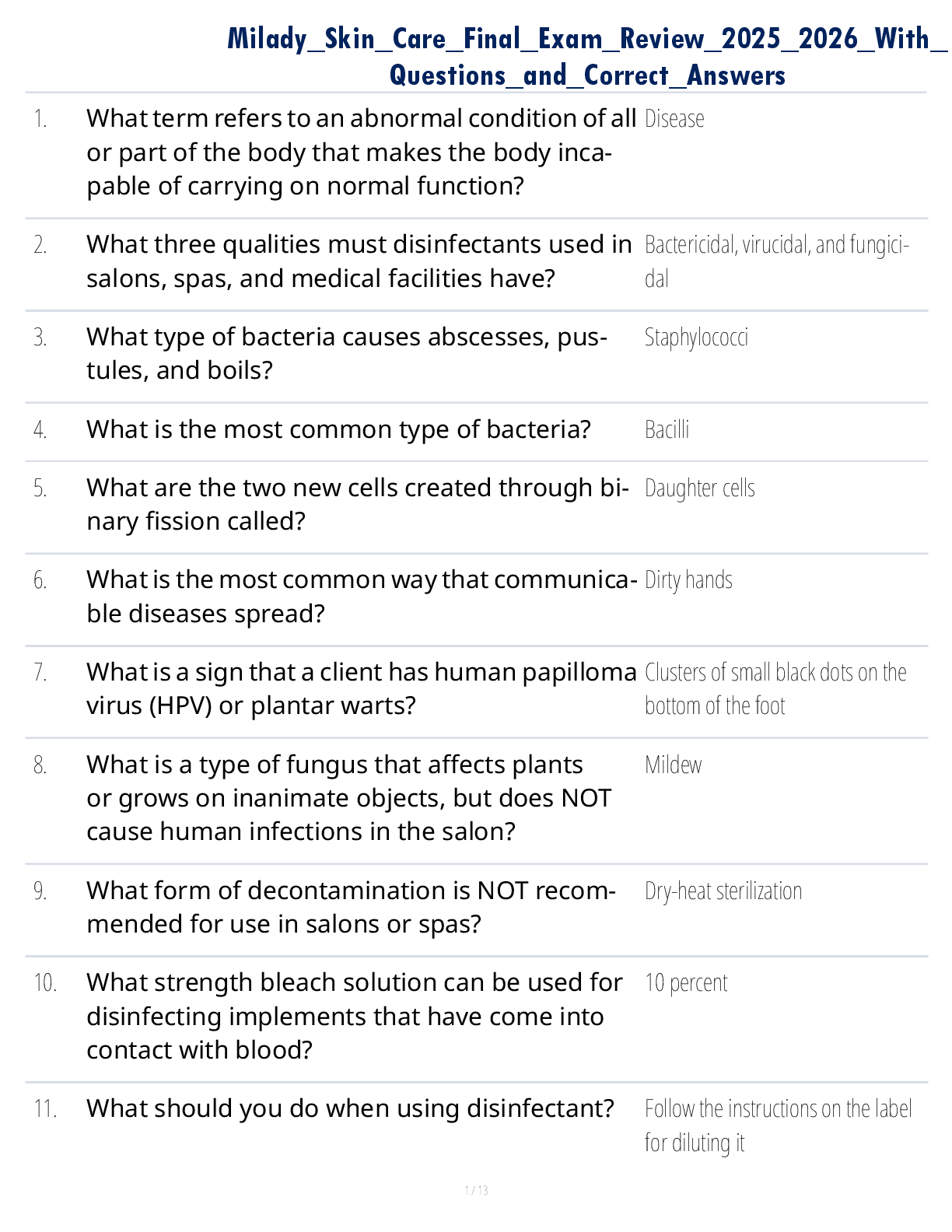 Cosmetology > STUDY GUIDE > Milady Skin Care Final Exam Review 2025 With Questions and Correct Answers (All)