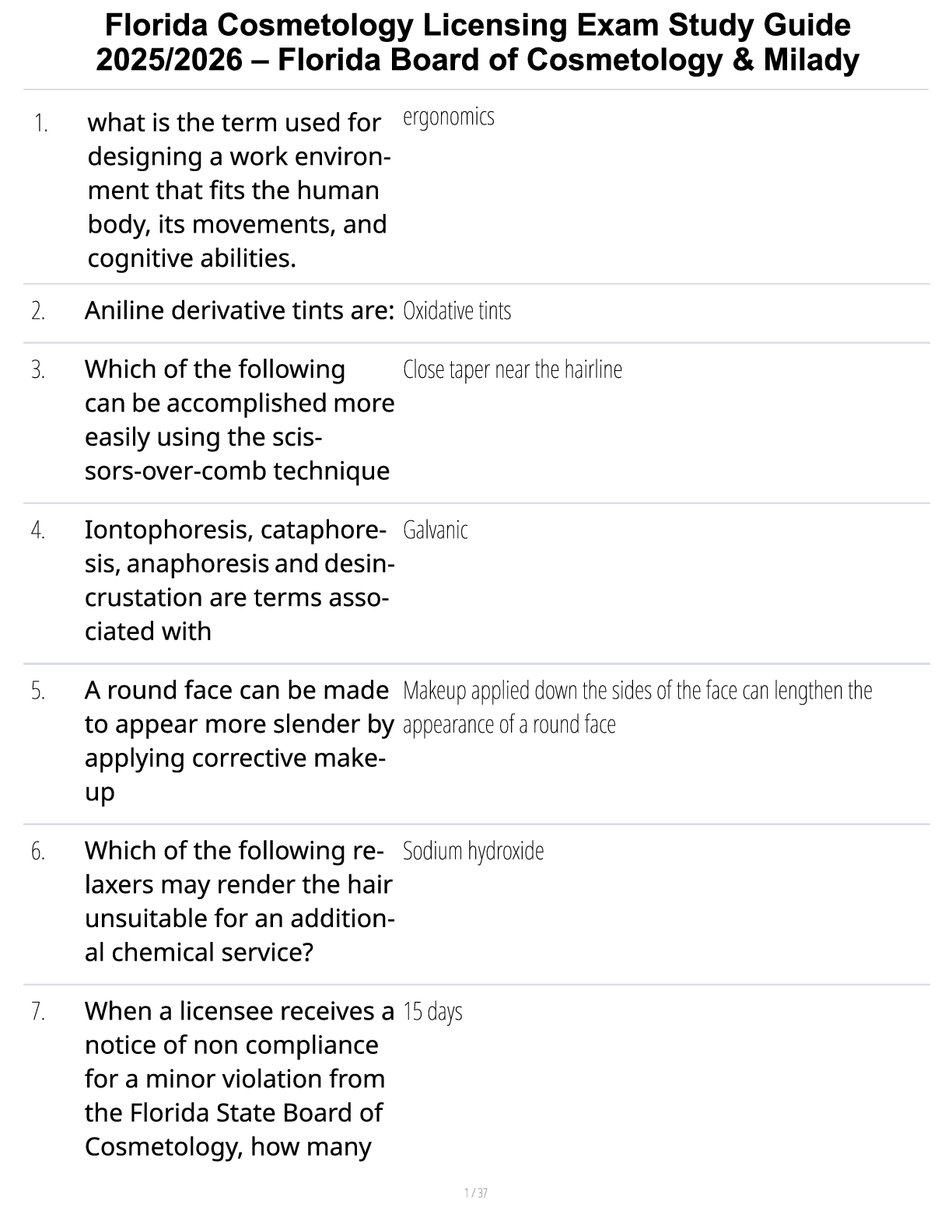 Cosmetology > STUDY GUIDE > Florida Cosmetology Licensing Exam Study Guide 2025/2026 – Florida Board of Cosmetology & Milady (All)