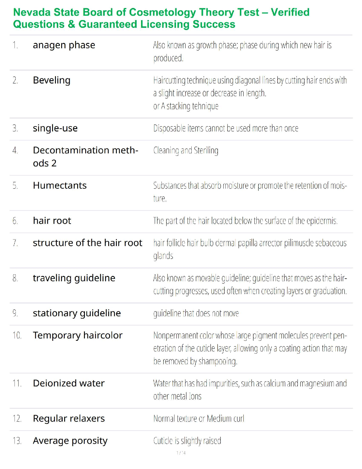 Cosmetology > STUDY GUIDE > Nevada State Board of Cosmetology Theory Test – Verified Questions & Guaranteed Licensing Success (All)