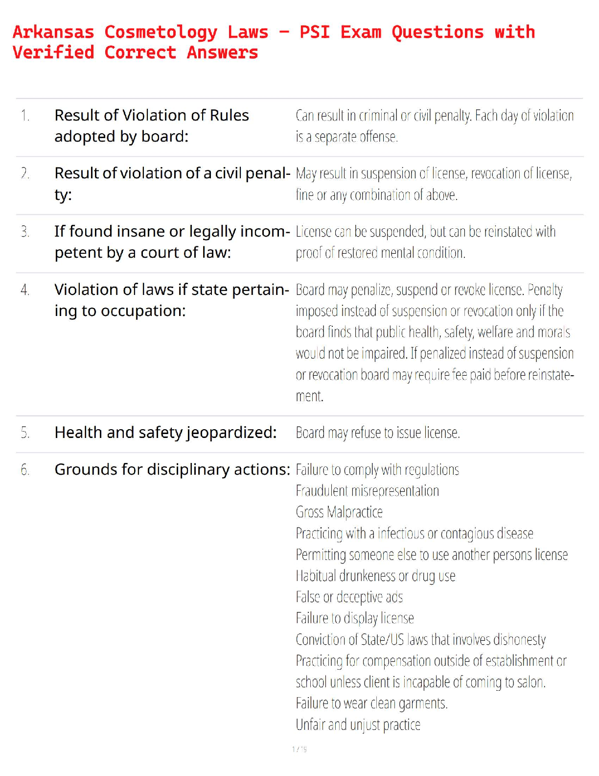 Cosmetology > QUESTIONS and ANSWERS > Arkansas Cosmetology Laws – PSI Exam Questions with Verified Correct Answers (All)