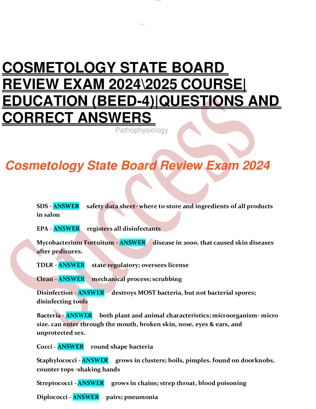 Cosmetology > EXAM > COSMETOLOGY STATE BOARD REVIEW EXAM 2024\2025 COURSE| EDUCATION (BEED-4)|QUESTIONS AND CORRECT ANSWERS (All)