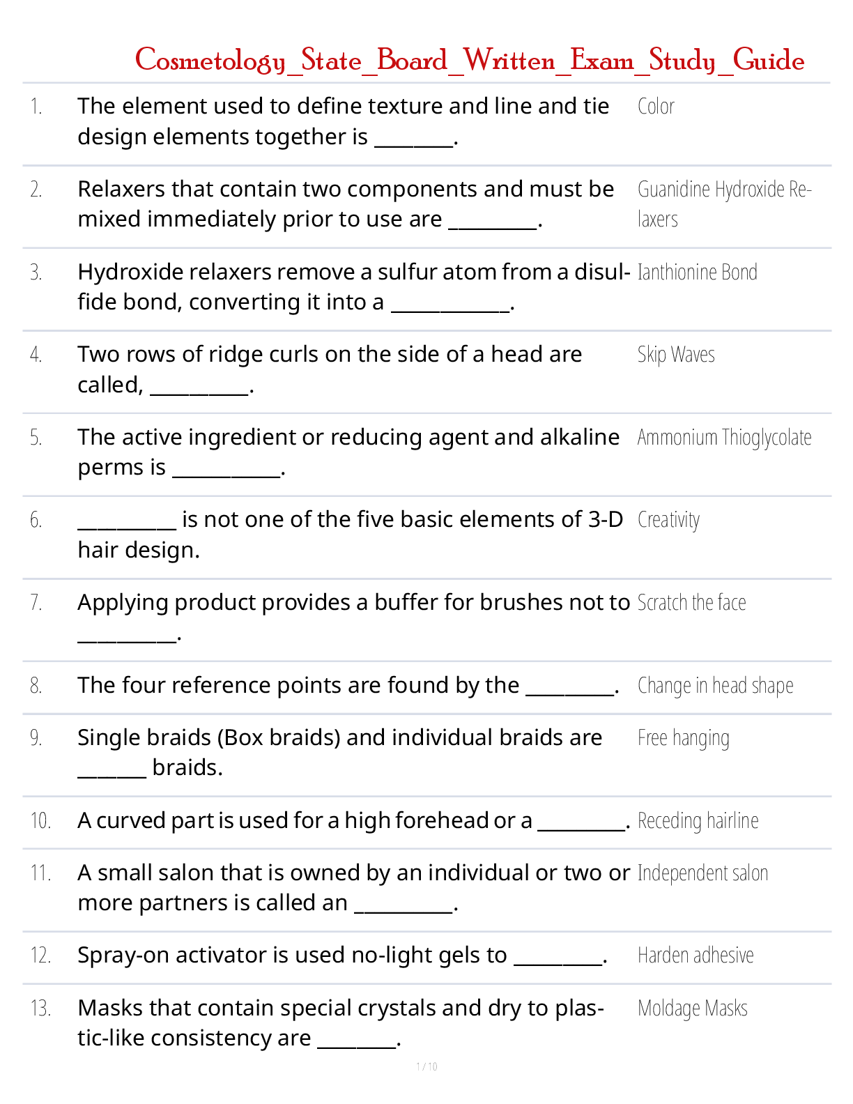 Here are the best study resources to pass Cosmetology. Find Cosmetology study guides, notes, assignments, and much more.