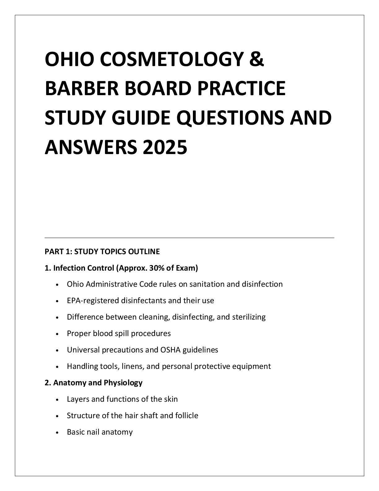 Cosmetology > EXAM > OHIO COSMETOLOGY & BARBER BOARD PRACTICE STUDY GUIDE QUESTIONS AND ANSWERS 2025 (All)