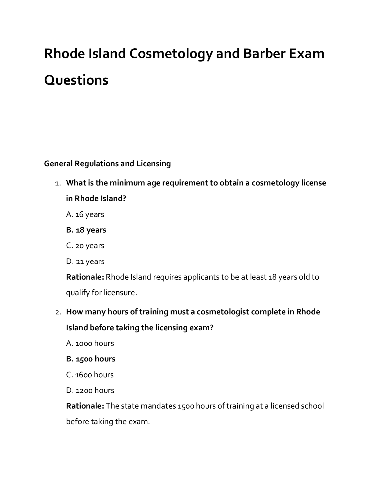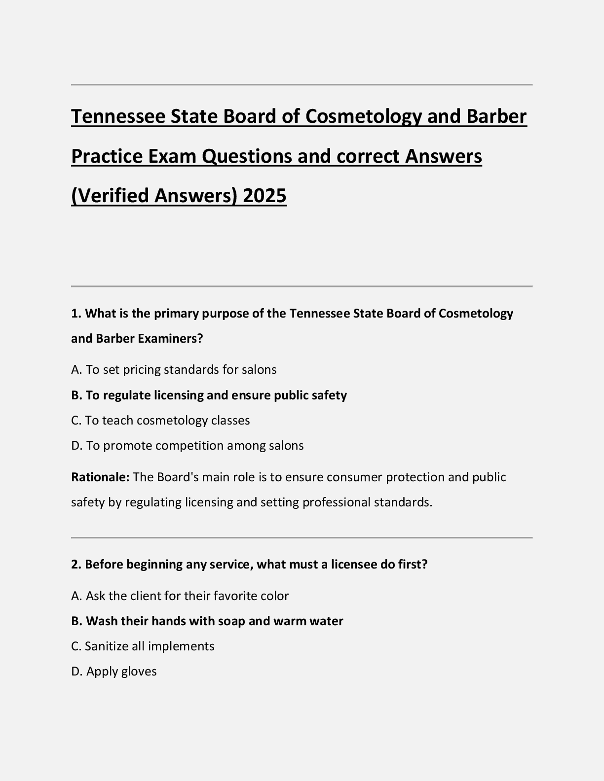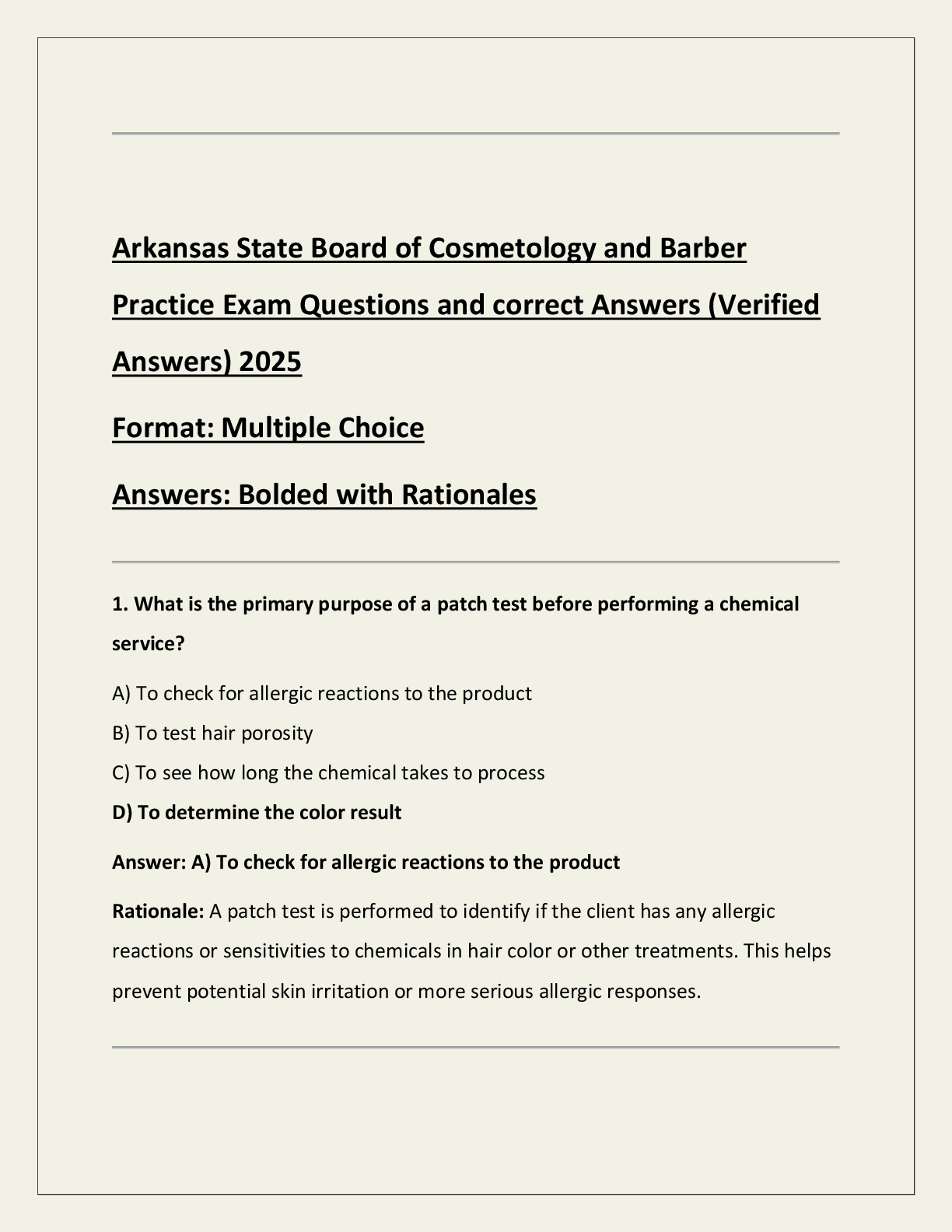 Cosmetology > EXAM > Arkansas State Board of Cosmetology and Barber Practice Exam Questions and correct Answers (Verified Answers) 2025 Format: Multiple Choice Answers: Bolded with Rationales (All)