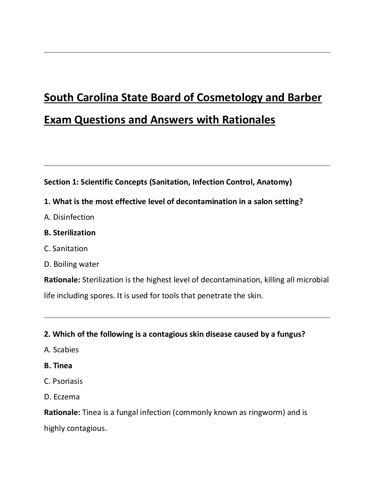 Cosmetology > EXAM > South Carolina State Board of Cosmetology and Barber Exam Questions and Answers with Rationales (All)