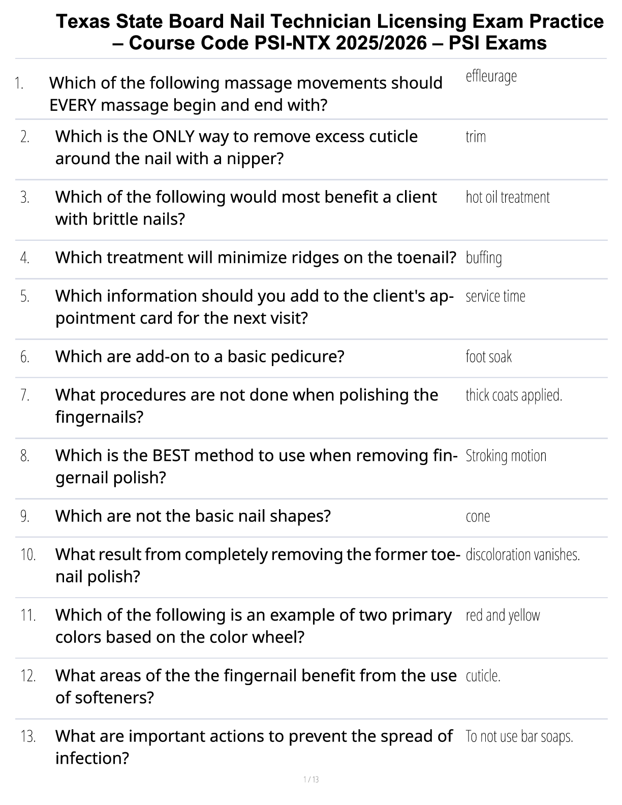 Cosmetology > STUDY GUIDE > Texas State Board Nail Technician Licensing Exam Practice – Course Code PSI-NTX 2025/2026 – PSI Exams (All)