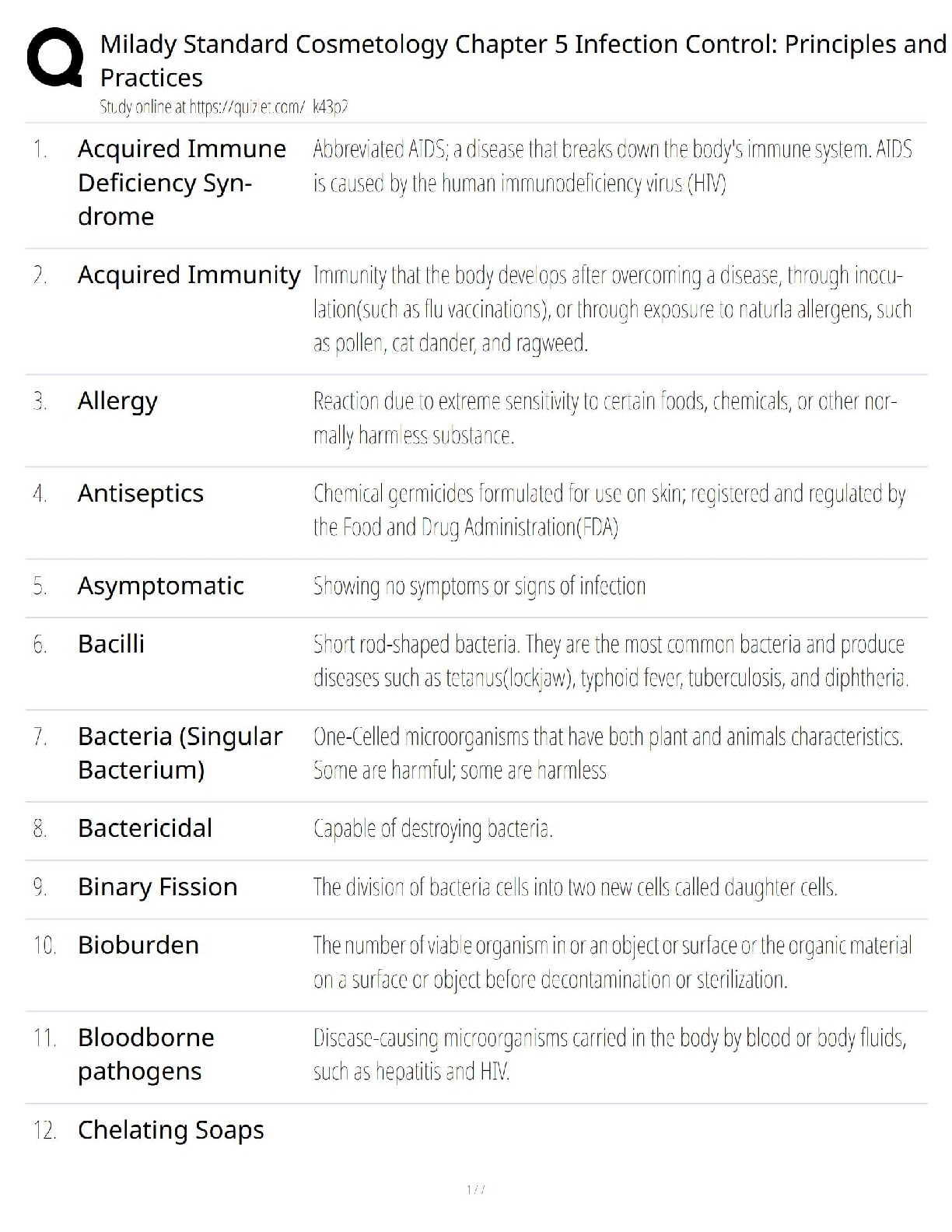 Cosmetology > QUESTIONS & ANSWERS > Milady Standard Cosmetology Chapter 5 Infection Control Principles and Practices / Quiz & Study Guide / Test Bank Answers / 2025 Update (All)