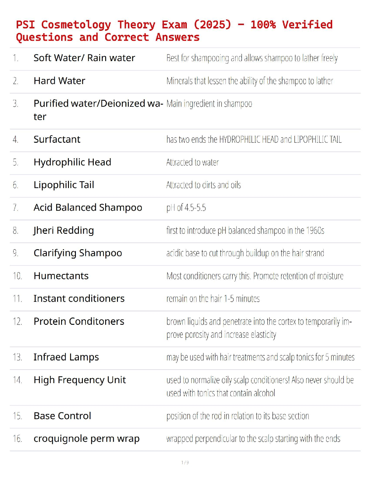 Cosmetology > QUESTIONS & ANSWERS > PSI Cosmetology Exam (2025) — 100% Verified Questions and Answers | Guaranteed Pass (All)