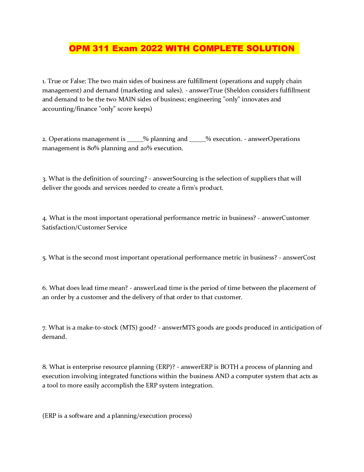 Management > QUESTIONS & ANSWERS > OPM 311 Exam 2022 WITH COMPLETE SOLUTION (All)