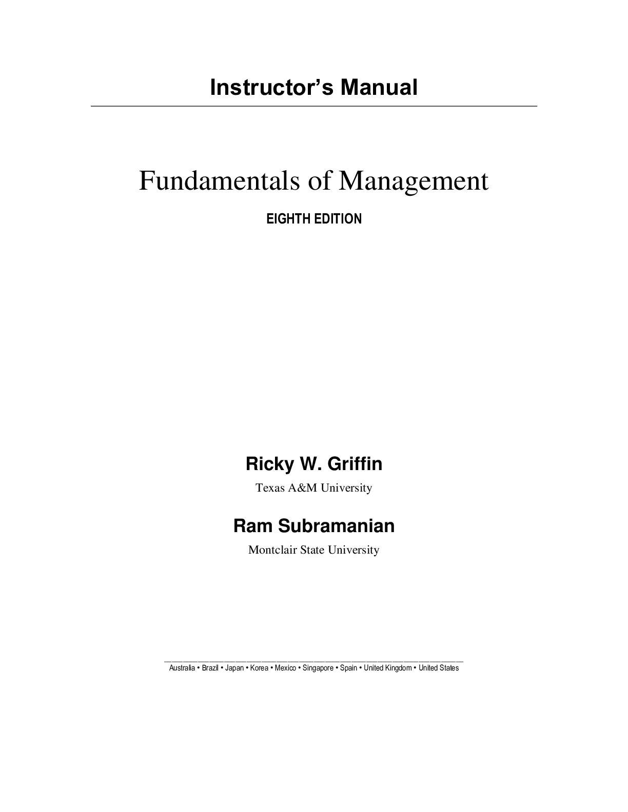 Management > SOLUTIONS MANUAL > Fundamentals of Management 8th Edition Ricky Griffin Solutions Manual (All)