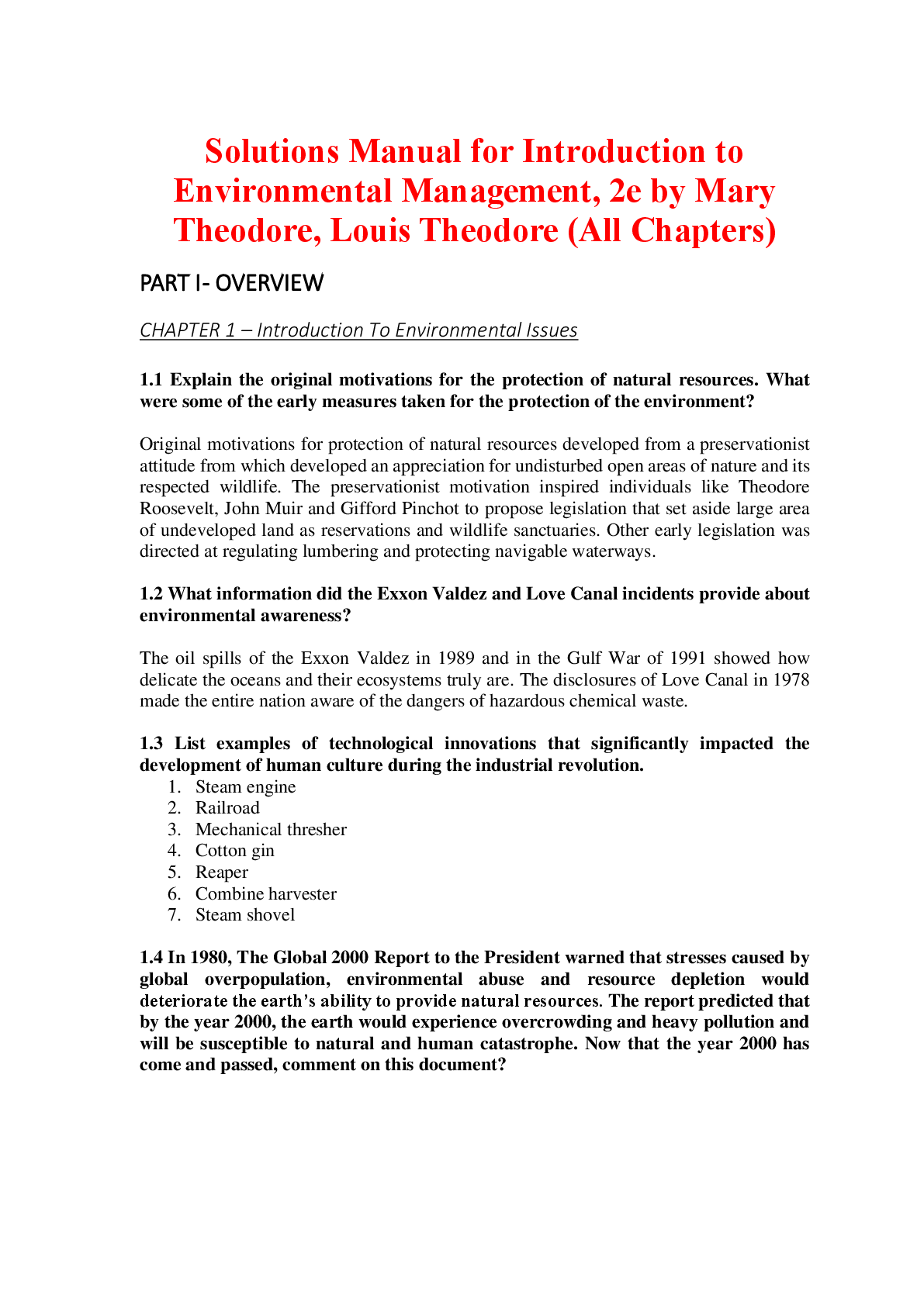 Management > SOLUTIONS MANUAL > Solutions Manual for Introduction to Environmental Management, 2nd Edition By Mary Theodore, Louis Theodore (All)
