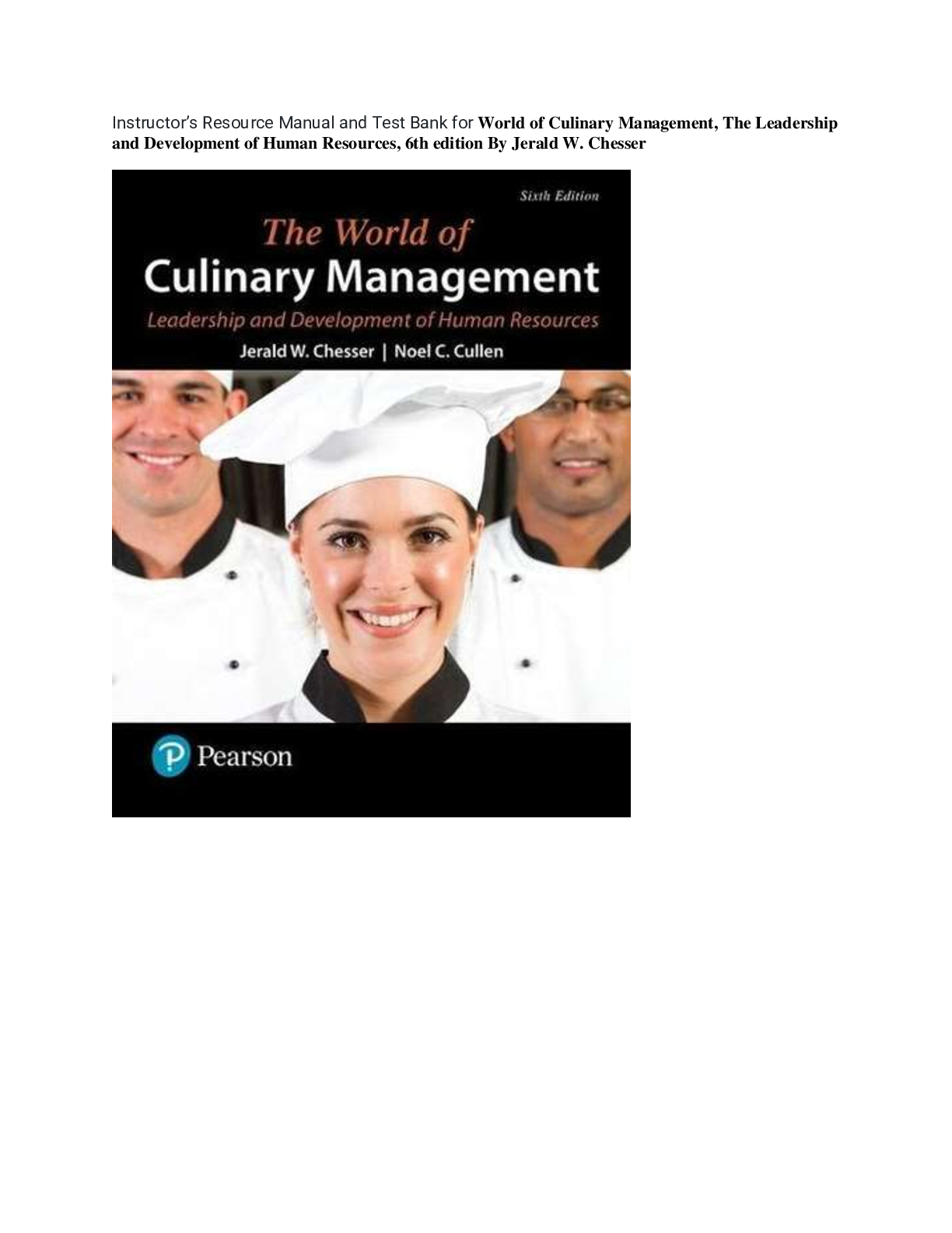 Management > TEST BANKS > Instructor’s Resource Manual and Test Bank for World of Culinary Management, The Leadership and Development of Human Resources 6th edition by jerald (All)
