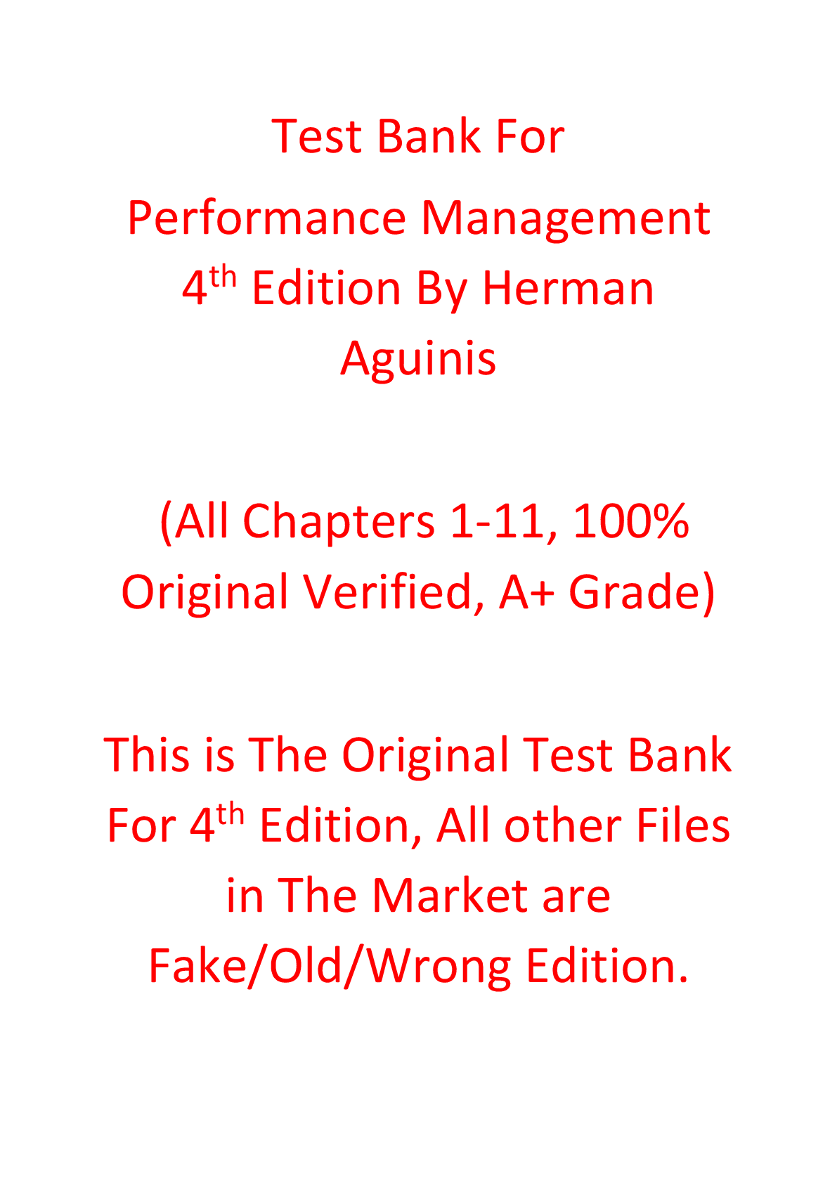 Management > TEST BANKS > Test Bank For Performance Management 4th Edition By Herman Aguinis (All)