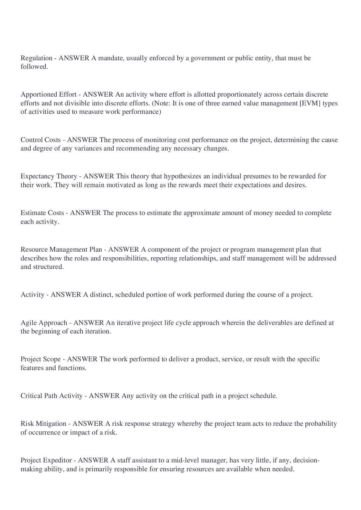 Management > EXAM > PMP Exam Questions Answered Correct (All)