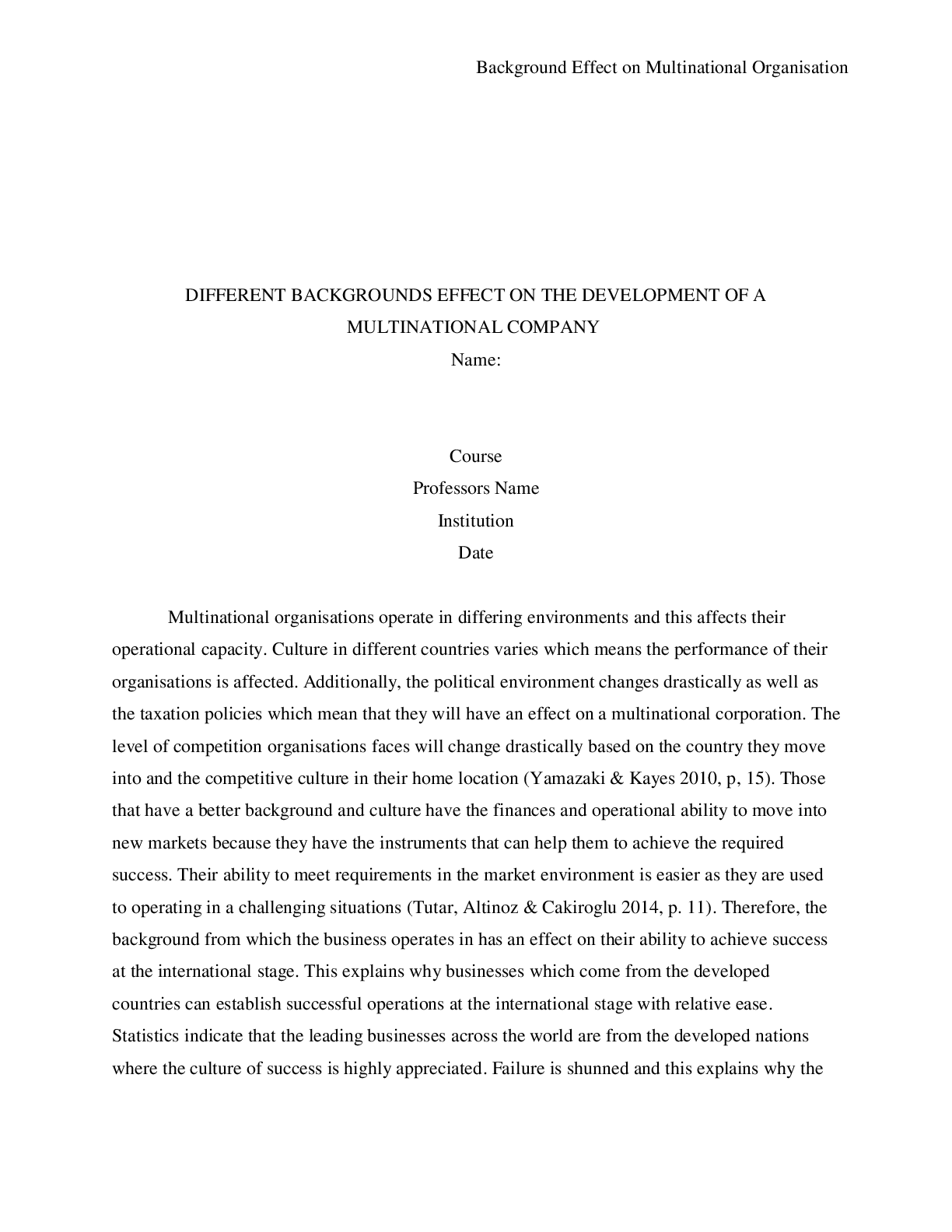Management > ESSAY > DIFFERENT BACKGROUNDS EFFECT ON THE DEVELOPMENT OF A MULTINATIONAL COMPANY (All)