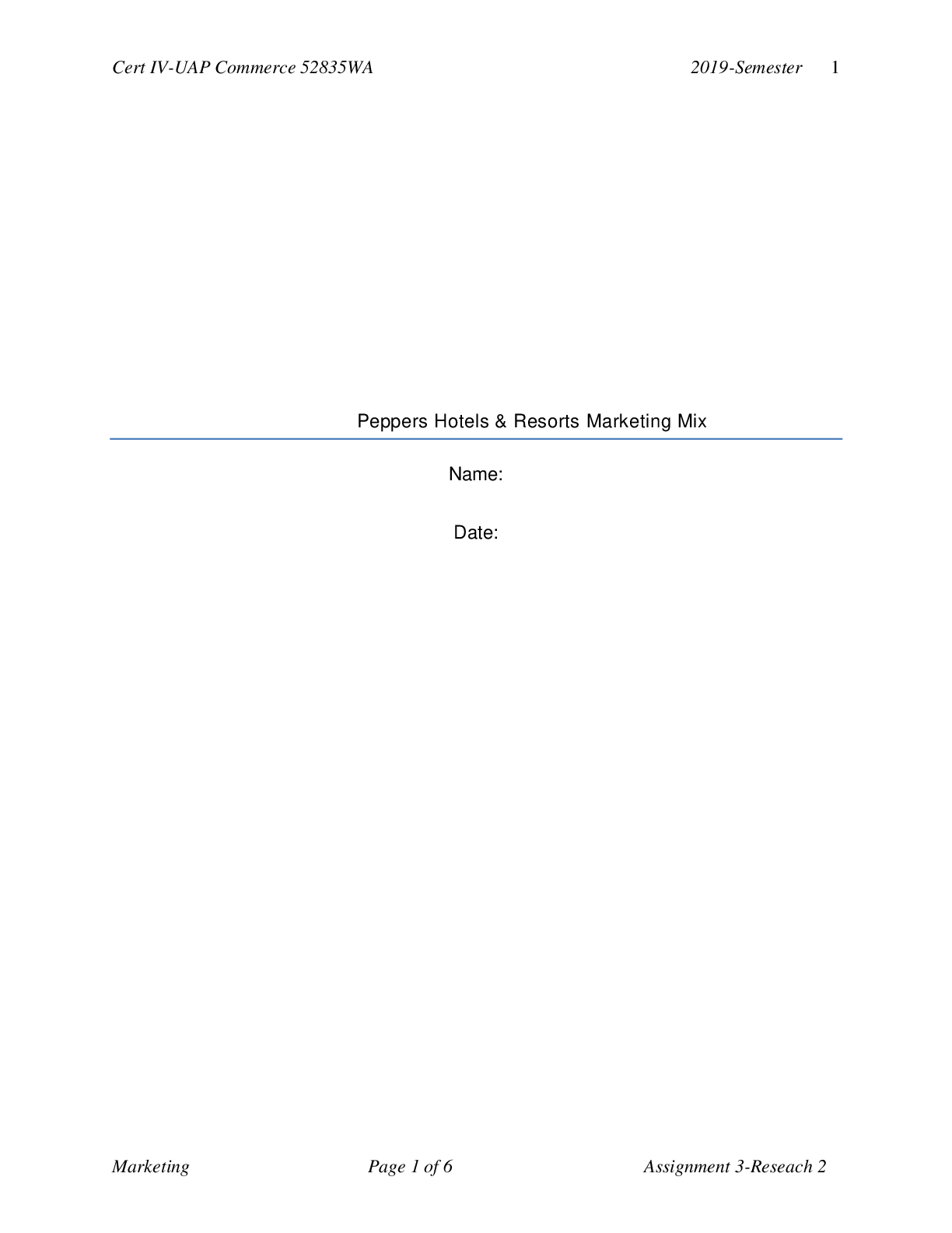 Management > ESSAY > Peppers Hotels & Resorts Marketing Mix (All)