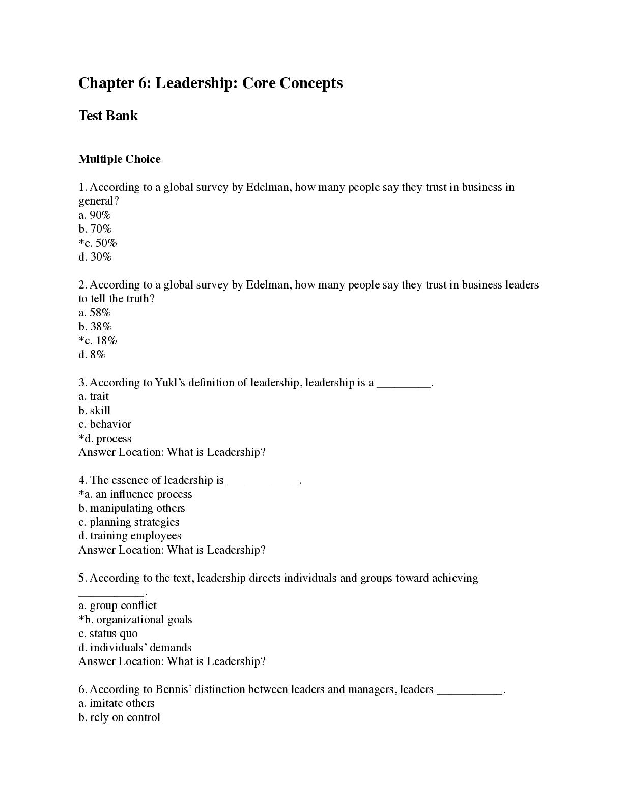 Management > EXAMs > MG 401, Chapter 6: Leadership: Core Concepts Test Bank Questions /Answers Scandura (All)