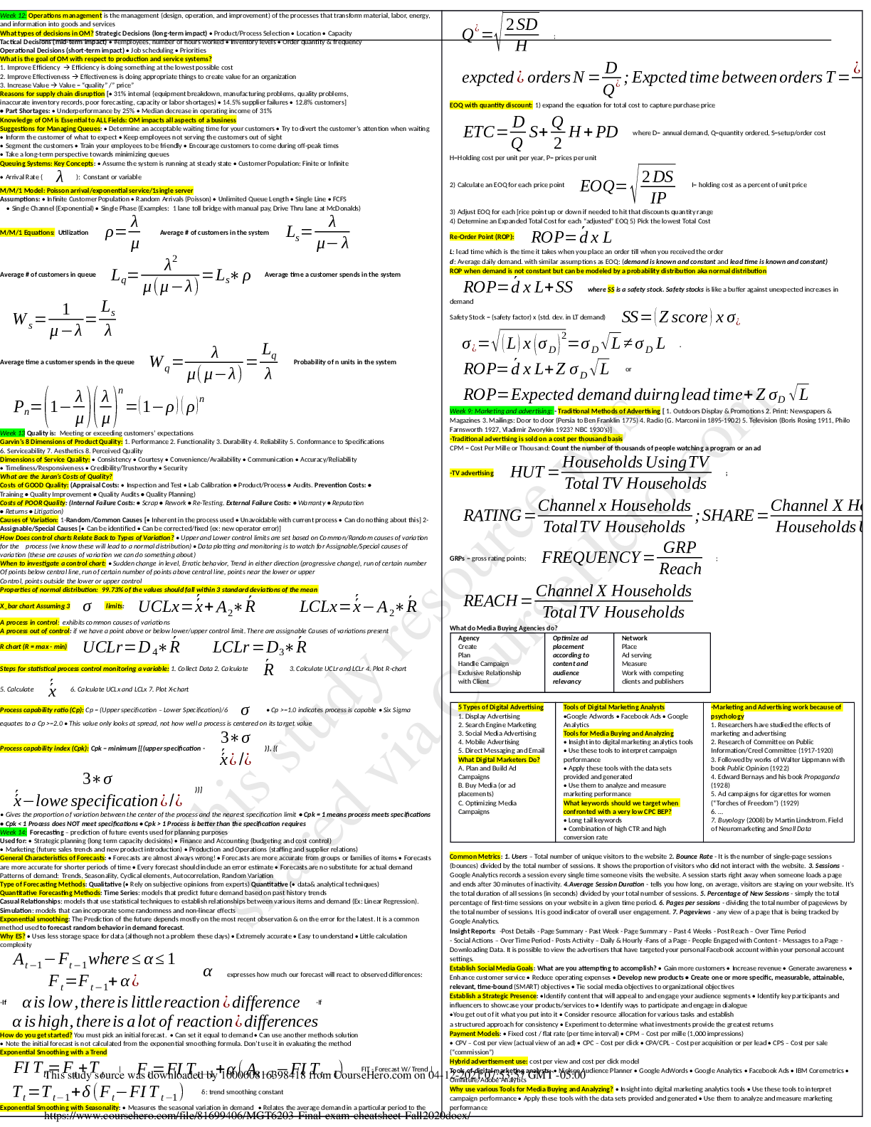 Management > QUESTIONS & ANSWERS > Georgia Institute Of Technology - MGT 6203MGT6203_Final_exam_cheatsheet_Fall2020 (All)