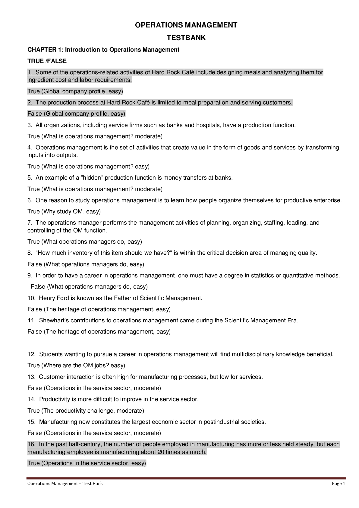 Management > TEST BANKS > MGT 330 OPERATIONS MANAGEMENT TESTBANK -Harvard University (All)