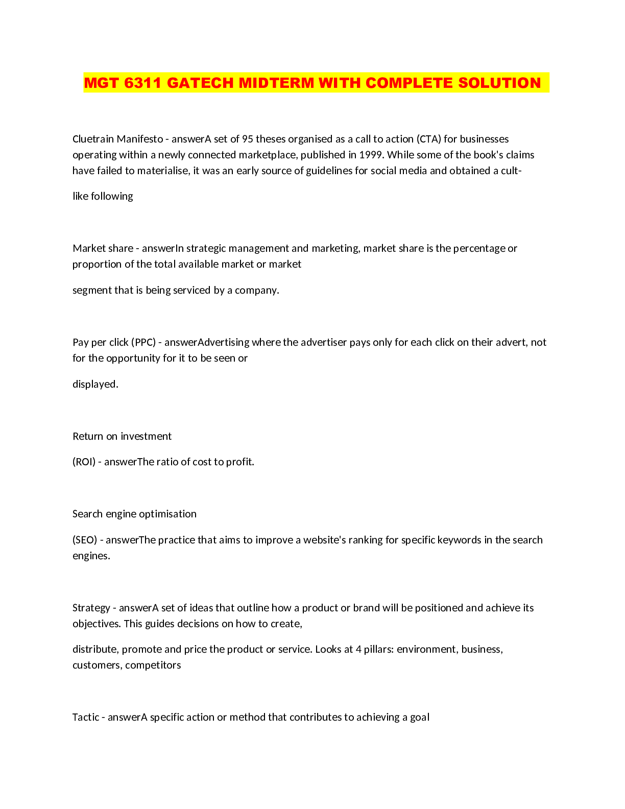 Management > QUESTIONS & ANSWERS > MGT 6311 GATECH MIDTERM WITH COMPLETE SOLUTION (All)