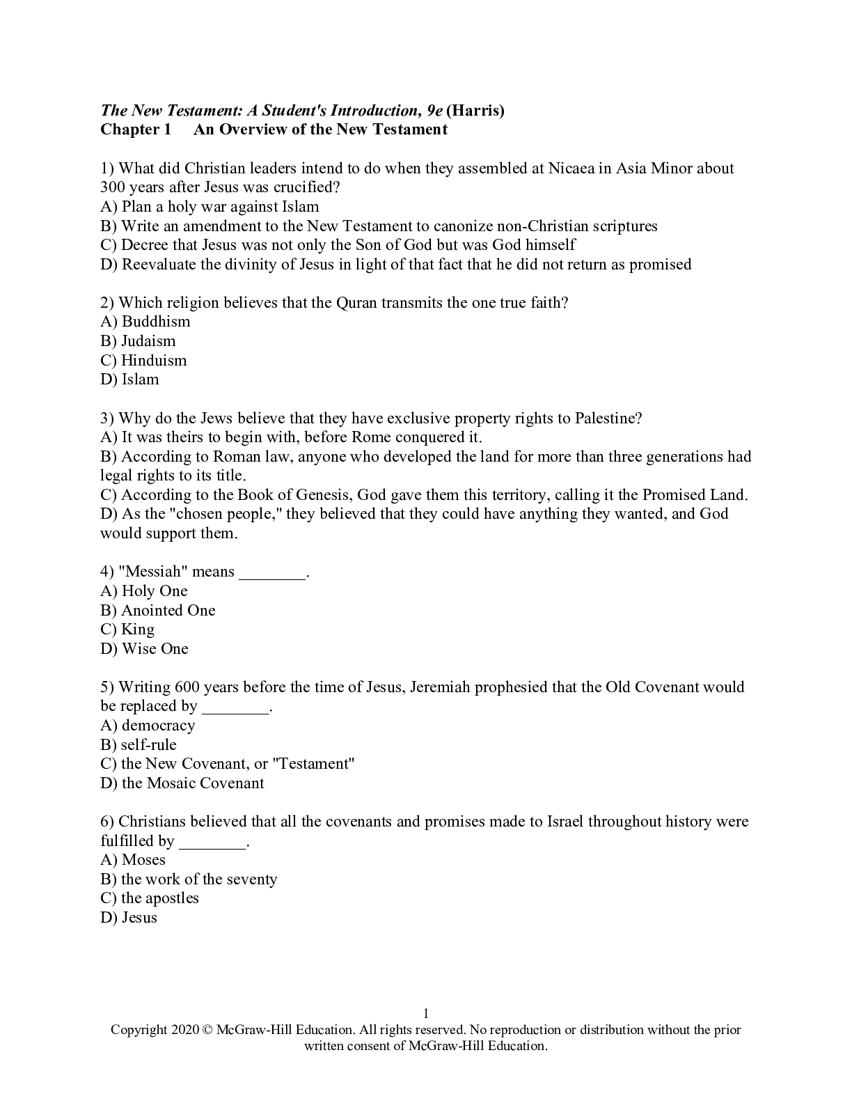 Management > TEST BANKS > The New Testament, A Student's Introduction, 9th Edition by Stephen Harris | TEST BANK (All)