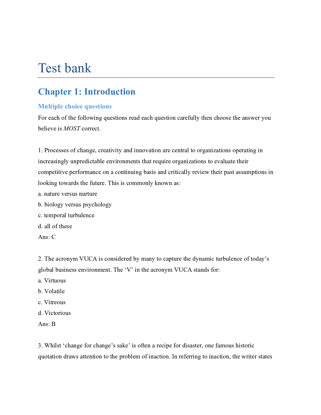 Management > TEST BANKS > Managing Change, Creativity and Innovation, 4th Edition by Dawson, Andriopoulos | All Chs 1-15 Test Bank (All)