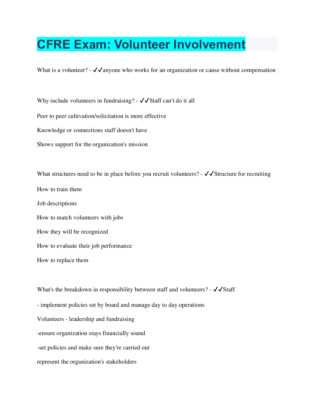 Management > EXAM > CFRE Exam: Volunteer Involvement | Questions with 100% Correct Answers | Verified (All)