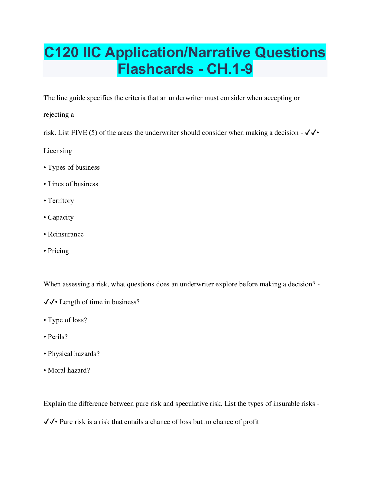 Management > EXAM > C120 IIC Application/Narrative Questions Flashcards - CH.1-9 | Questions with 100% Correct Answers | Verified | 39 Pages (All)