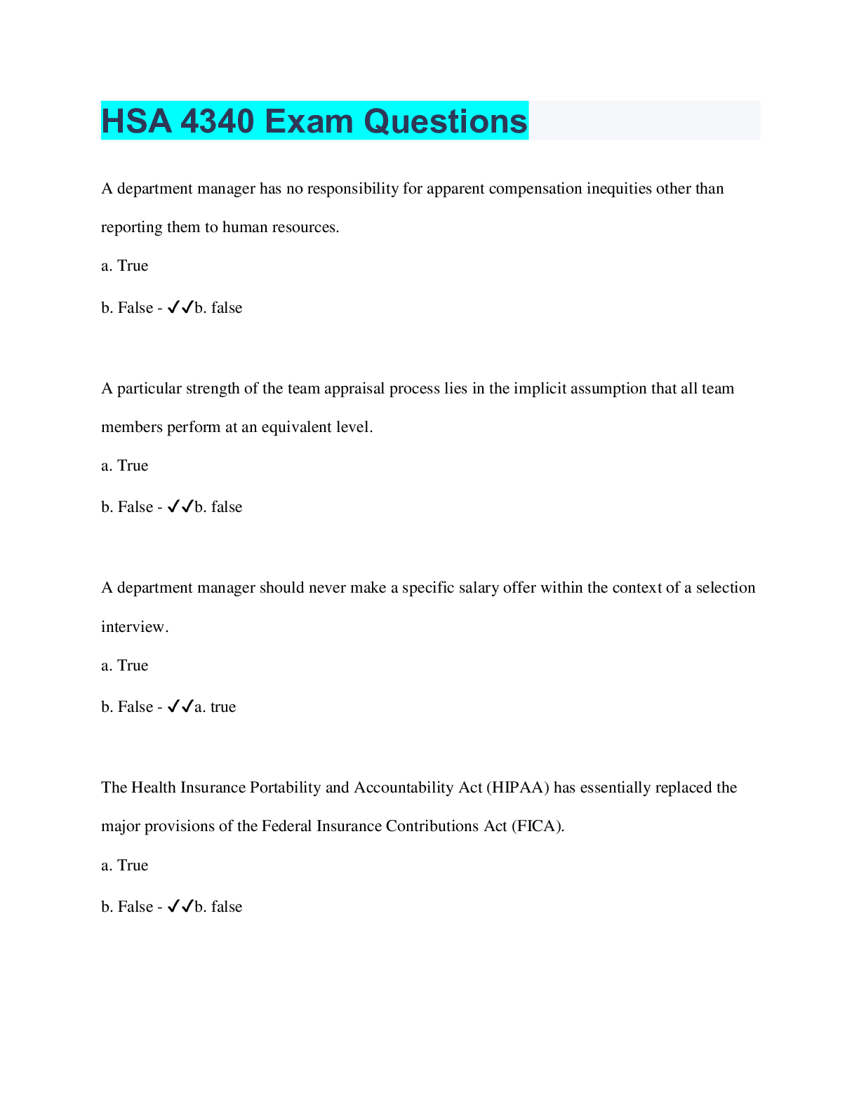 Management > EXAM > HSA 4340 Exam Questions | 330 Questions with 100% Correct Answers | Verified | 90 Pages (All)
