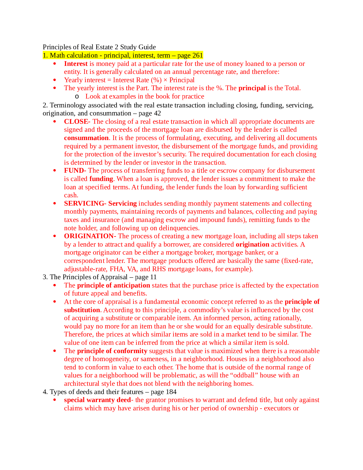 Management > STUDY GUIDE > Principles of Real Estate 2 Study Guide | 100% Verified (All)