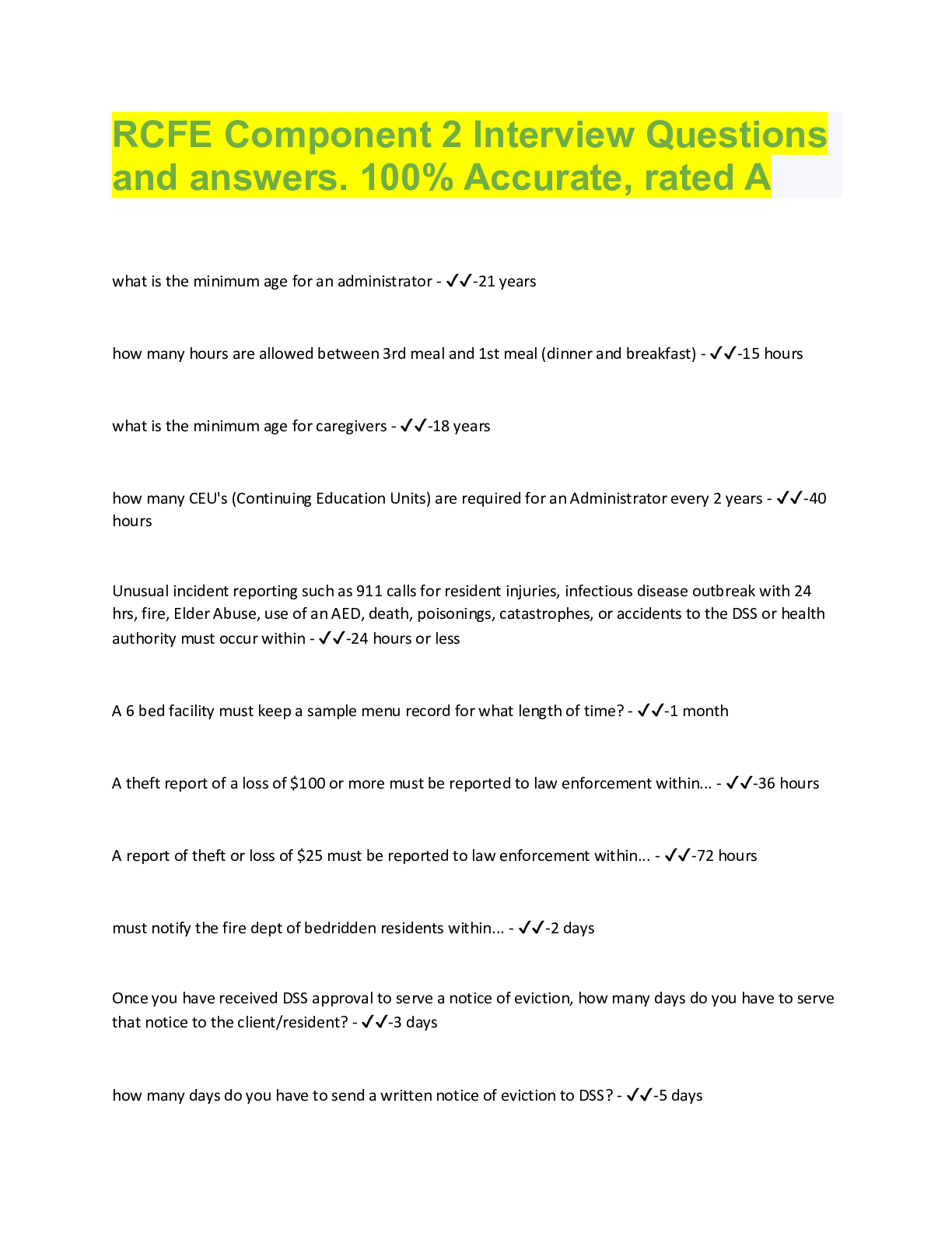 Management > QUESTIONS & ANSWERS > RCFE Component 2 Interview Questions and answers. 100% Accurate, rated A (All)