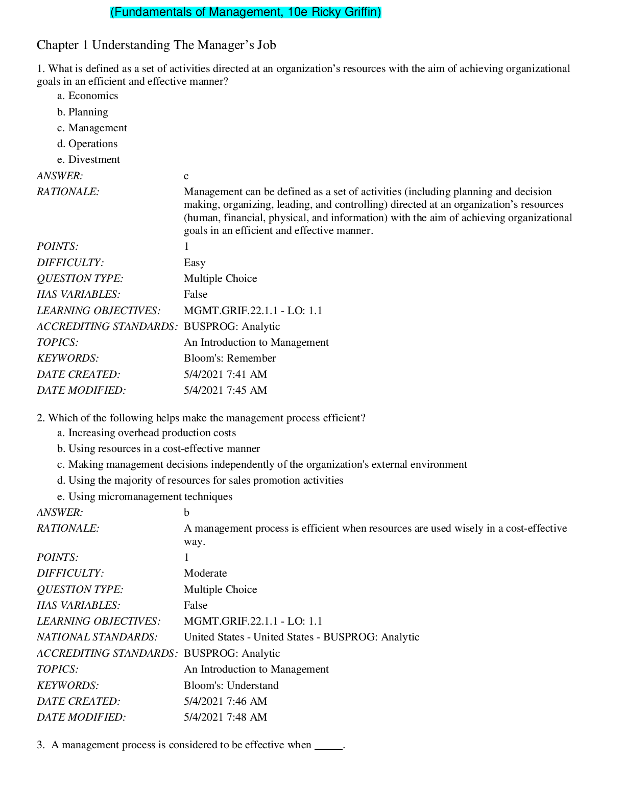 Management > TEST BANKS > Fundamentals of Management, 10e Ricky Griffin (Test Bank) (All)